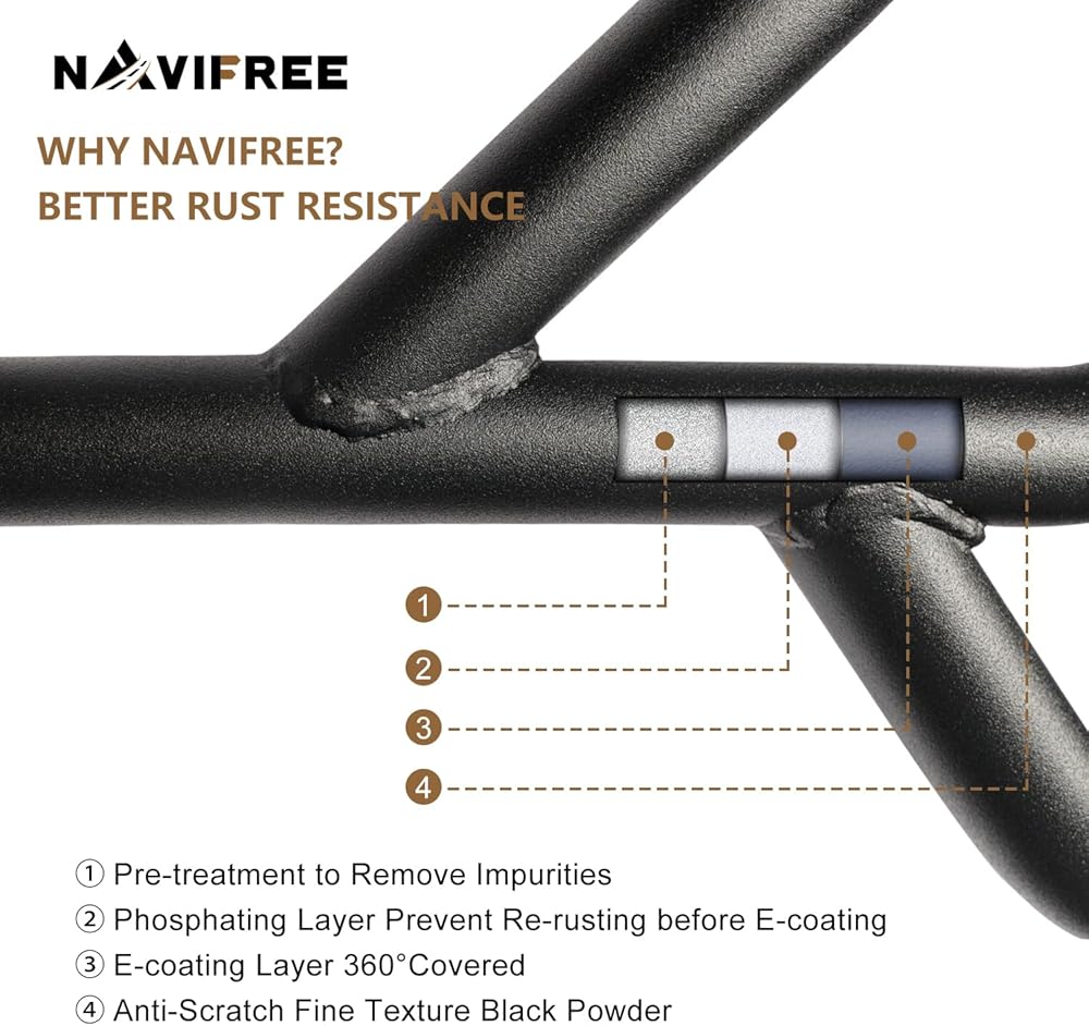 【Wild Style For Off Road】Crafted to endure the rigors of your off-road escapades, our front bumper is forged from thick DOM steel tubing, ensuring superior strength and durability to shield your ride's front end. Its sleek black powder-coated finish is UV-resistant, guaranteeing resilience against the elements and standing strong against any obstacle in your path