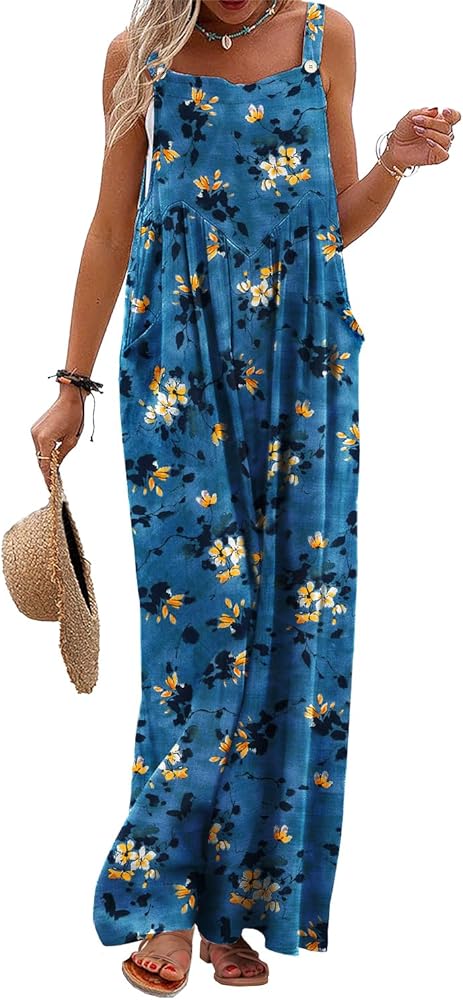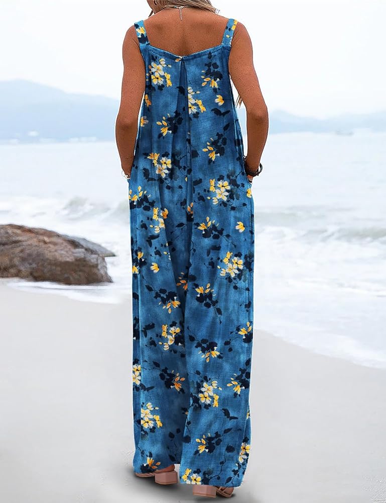 YESNO ملابس صيفية غير رسمية فضفاضة للنساء واسعة الساق حللا بوهو مطبوعة بالورود فضفاضة مع جيوب S PZH CR428