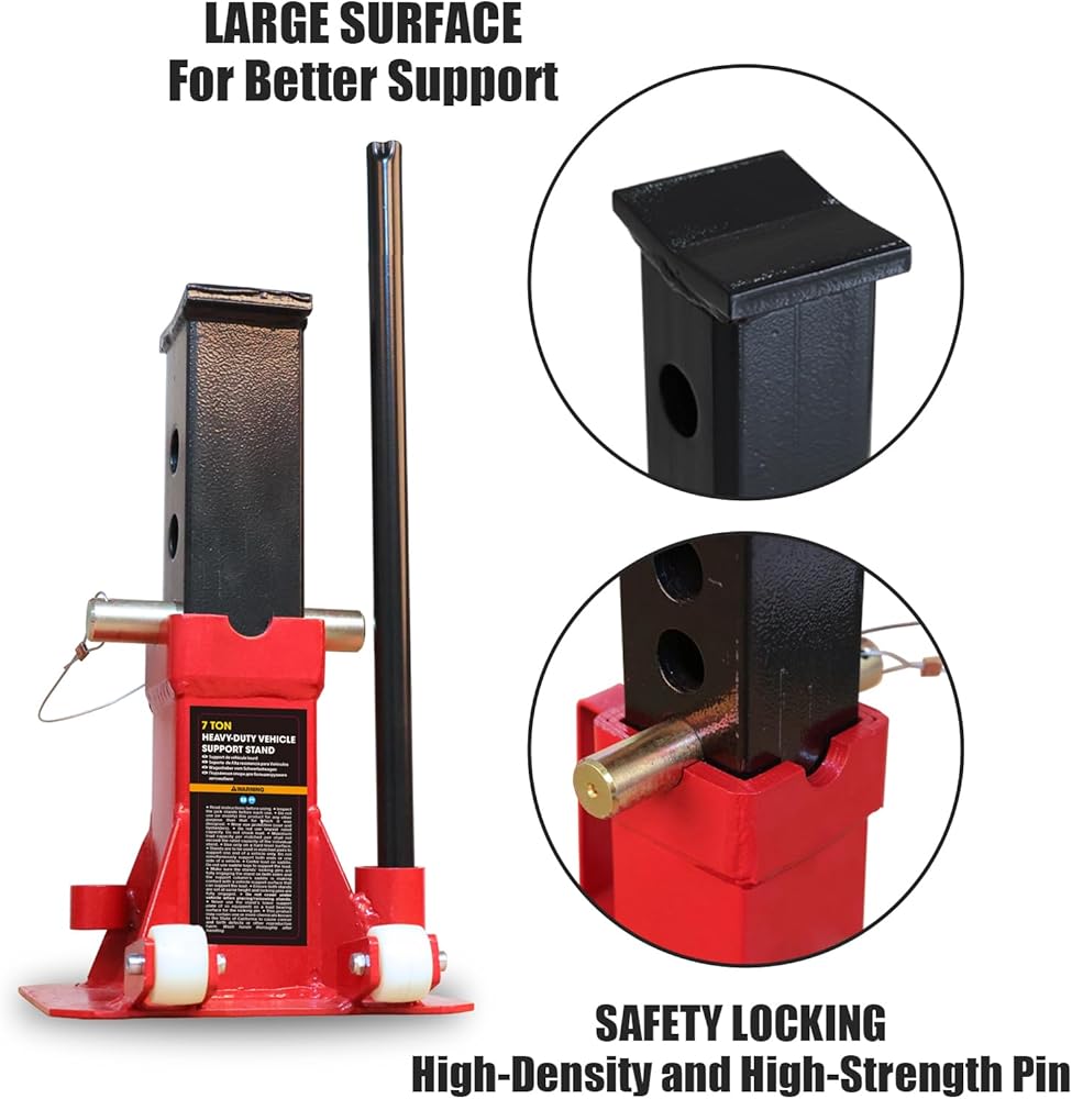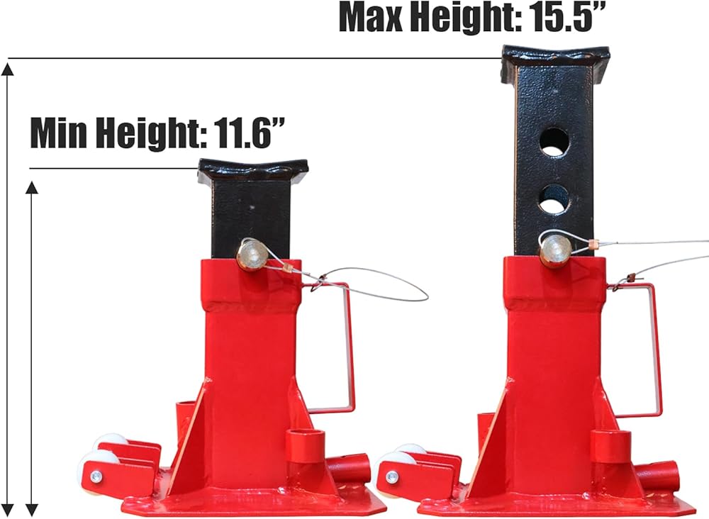 Professional heavy-duty jack stand: 12 Ton (26,400 lbs) capacity fits most vehicles; 12-5/8" to 18-1/8" Lifting range; 42.7 lbs for jack stand pair