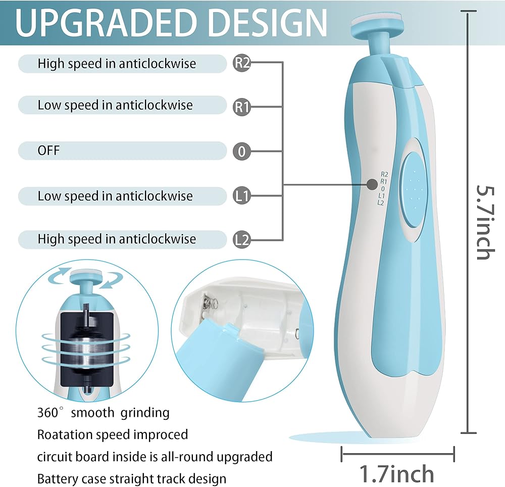 آمن وفعال - على عكس طرق القص التقليدية الأخرى، فإن مبرد أظافر الأطفال الأكثر أمانًا لطيف جدًا على أظافر الطفل عندما يعمل بطريقة طحن كهربائية، ولن يتلف الزوائد اللحمية أو أسرة الأظافر الناعمة، تقليم وتلميع أظافر القدم الصغيرة بأمان وسرعة.