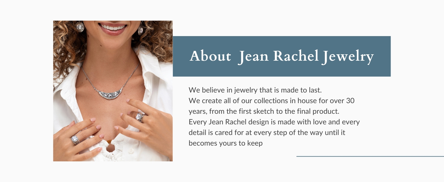 مجموعة جان راشيل - تم تصميمها وتصنيعها على يد أفضل الحرفيين الإسرائيليين. بدءًا من مجرد رسم أولي، فإننا نتصور الشكل والملمس والجمال. الجمع بين هذه العناصر في المجوهرات الخالدة التي سوف تكون محبوبة.