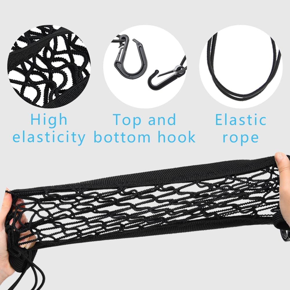 [Four-side High Elasticity with premium hooks]: This car mesh organizer uses high quality nylon + high elasticity with premium hooks, large capacity, superior performance, and can be use for long time.