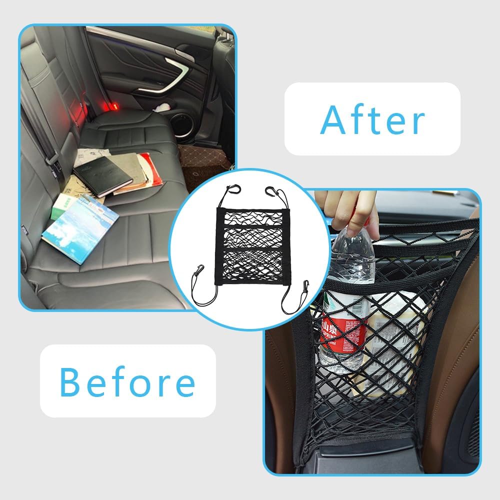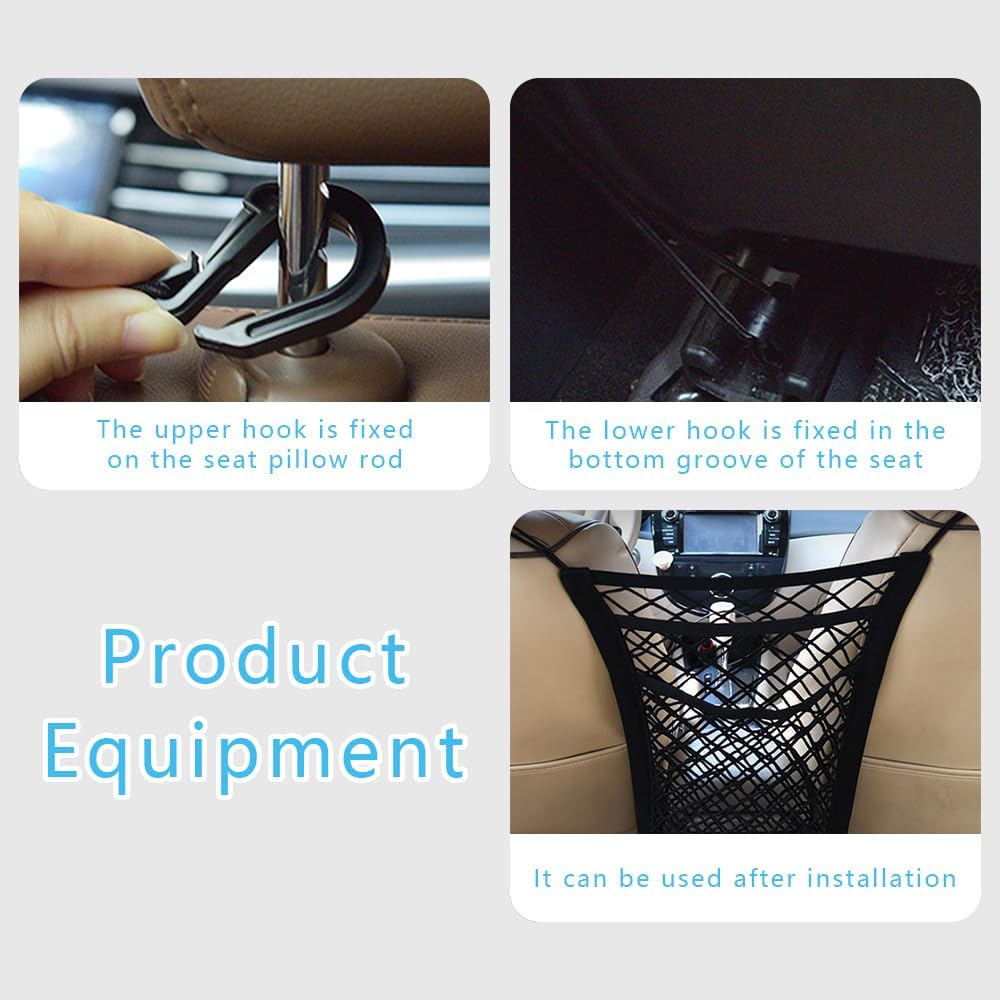 [Widely use]: The size of car net Oranize is 25CM*30CM,Between Seat Back Storage use elastic design makes the car mesh bag reliable, Can stretch to cover the space between the first two seats, 3 Layer Car Net Pocket to meet most cars and SUVs, trucks, etc.