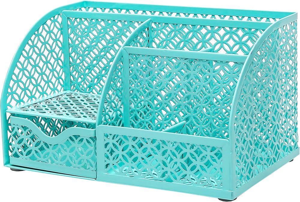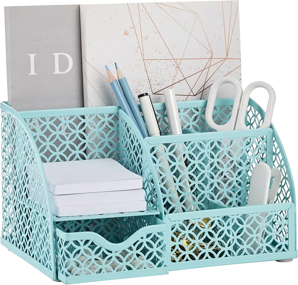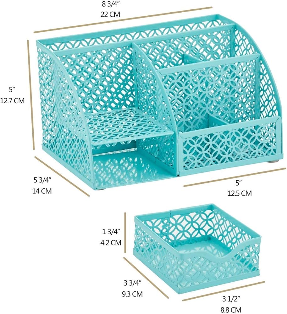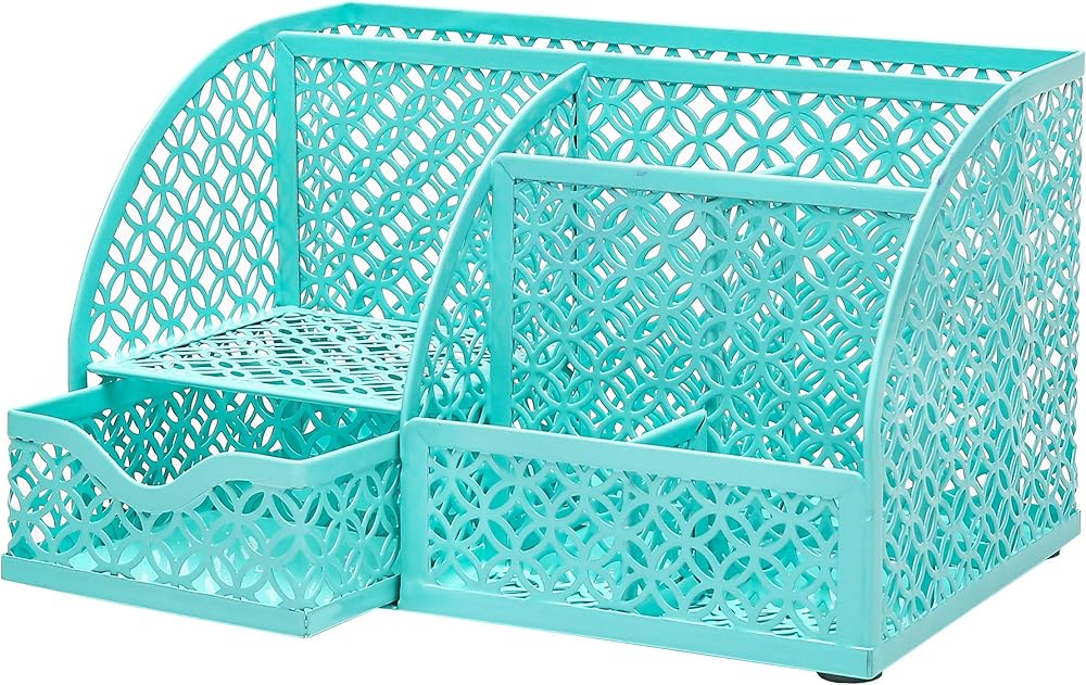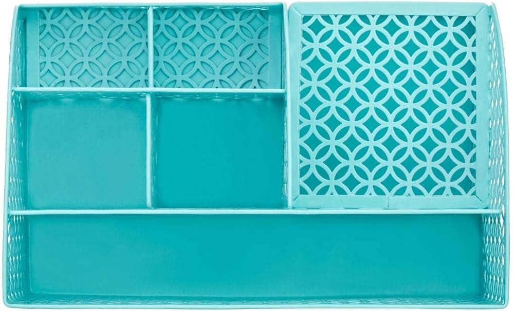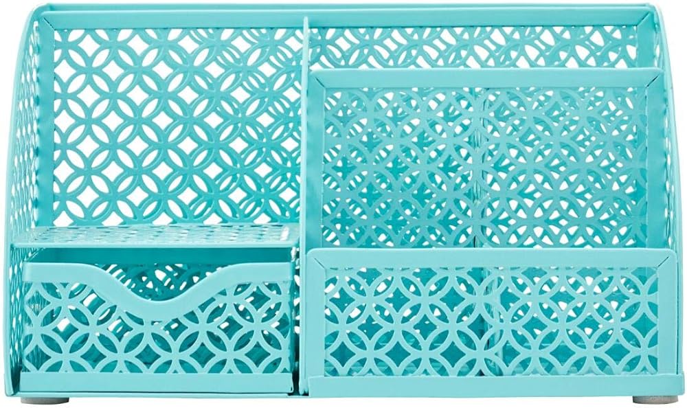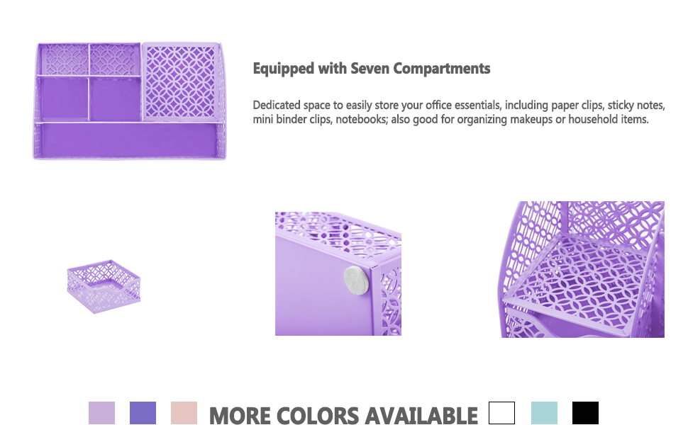 • المقصورات بأحجام وأشكال مختلفة - يسهل الاحتفاظ بالأقلام والملاحظات اللاصقة ومشابك الورق وما إلى ذلك في مكان واحد بينما يمكن للحجرة الموجودة في الخلف تخزين دفتر الملاحظات بحجم يصل إلى 8.5 بوصة × 11.75 بوصة؛ كما أنها جيدة لتنظيم المكياج والأدوات المنزلية الصغيرة.