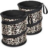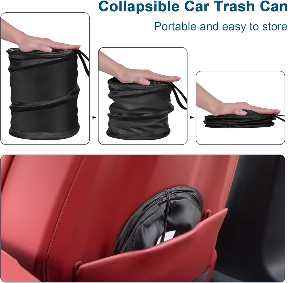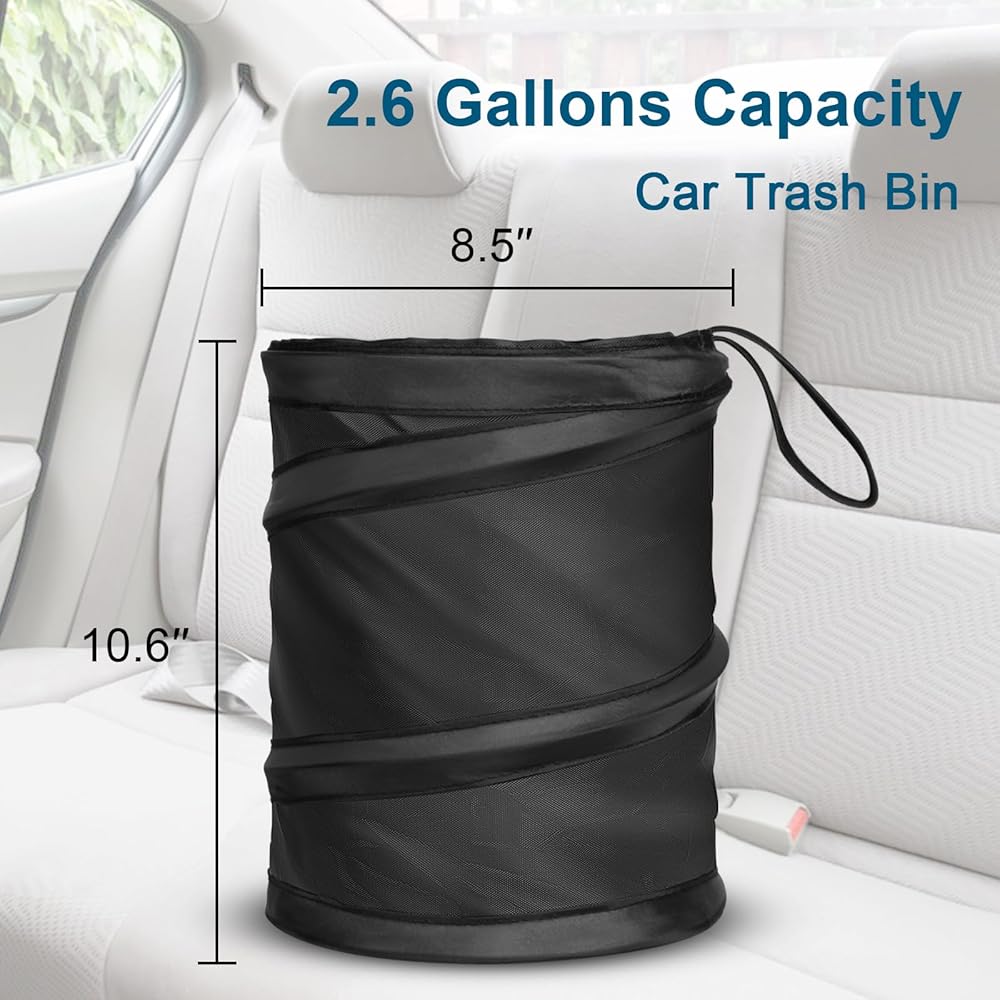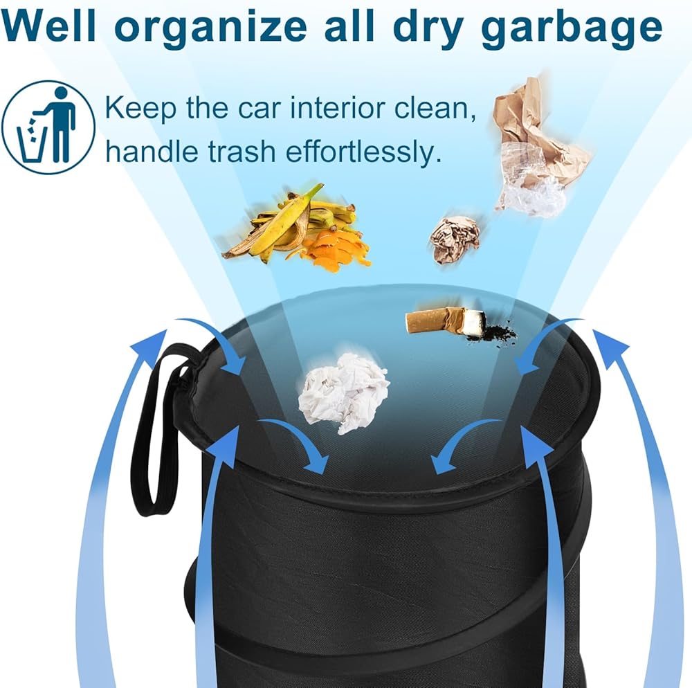 طرق تركيب متعددة: يمكن تعليق الشريط المطاطي الموجود على كيس قمامة السيارة على مسند الرأس أو رافعة التروس، ويمكن تثبيت الفيلكرو الموجود في الأسفل على المقعد أو الأرض لمنع سلة المهملات من التحرك أو الانقلاب.