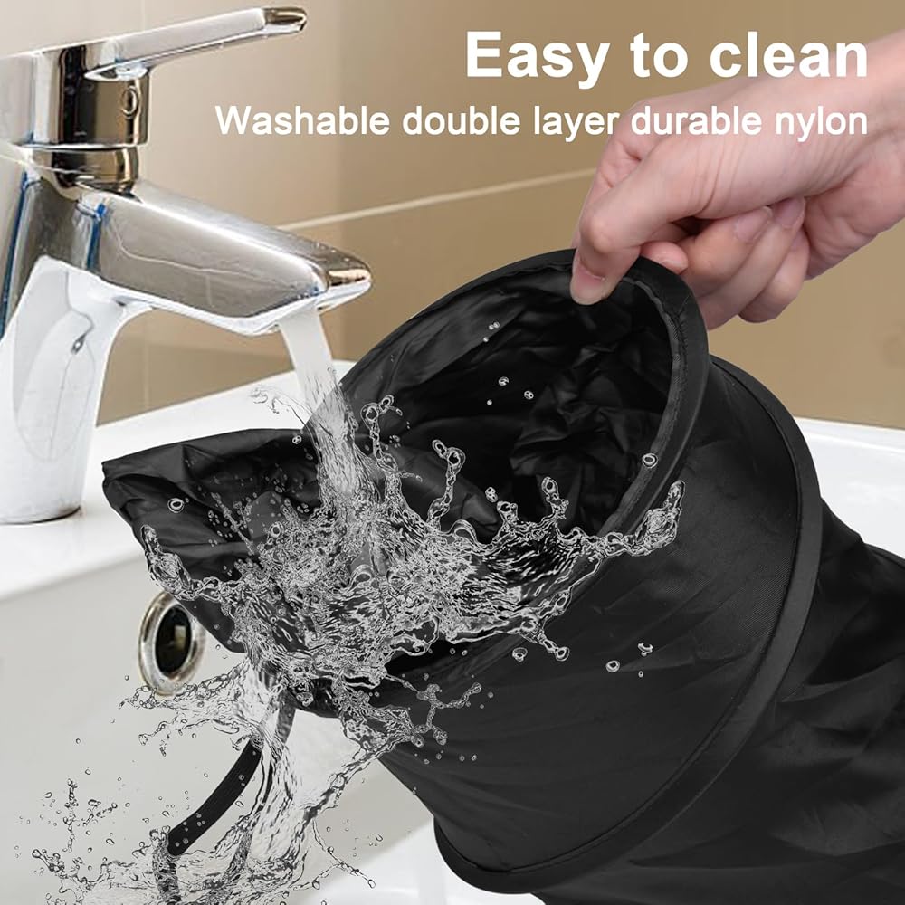 المتانة والنظافة: سلة المهملات القابلة للطي مصنوعة من مادة البوليستر مزدوجة الطبقة، والتي تتميز بمقاومة عالية للتآكل ويمكن إعادة استخدامها. يمكن سحبها مباشرة لتنظيف البطانة دون القلق بشأن البقع العنيدة.