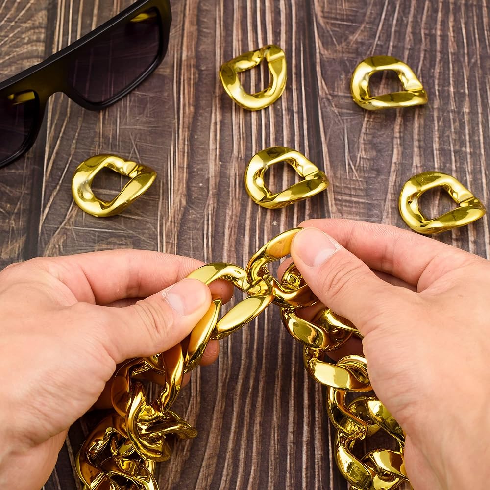 ★【قلادة ذهبية من البلاستيك الصناعي】- سلسلة مغني الراب مصنوعة من البلاستيك الآمن، صديق للبشرة، ليس من السهل أن يبهت، مصقول للغاية وناعم. هذه القلادة ذات السلسلة الذهبية قوية ومتينة. والألوان الذهبية والمشرقة تجعلها مناسبة تمامًا لملابس الهيب هوب الخاصة بك.