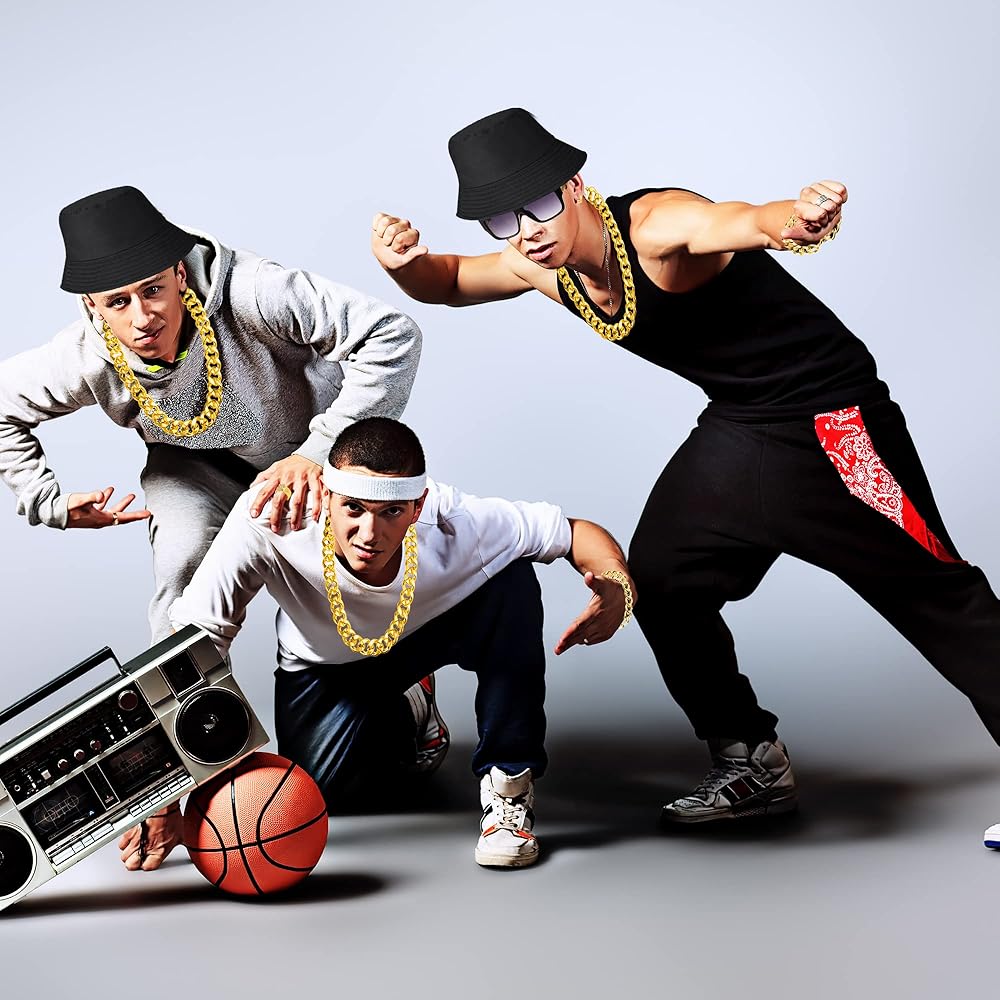 ★【استخدام واسع】- تتميز إكسسوارات الهيب هوب هذه في الثمانينيات والتسعينيات بتصميم كلاسيكي وقديم وعصري، وهي مناسبة جدًا لحفلات الثمانينيات والتسعينيات وبدلات الهيب هوب لمحبي الموسيقى. إنها أيضًا هدية رائعة لوالدك وزوجك وصديقك وابنتك وابنك وما إلى ذلك.