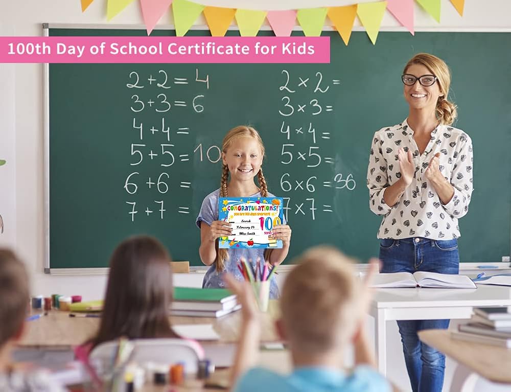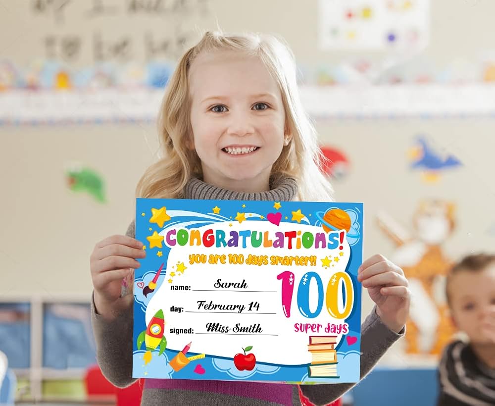 【Back to School Teacher Supplies】: Great 100th day of school gifts for kids or students for celebrating their achievements and encourage them to keep hard work,make the student feel happy and proud,100th day recognition awards certificates are great for back to school teacher classroom supplies,suitable for kindergarten,preschool,elementary and junior high school teachers to celebrate student's 100 day of school achievements.