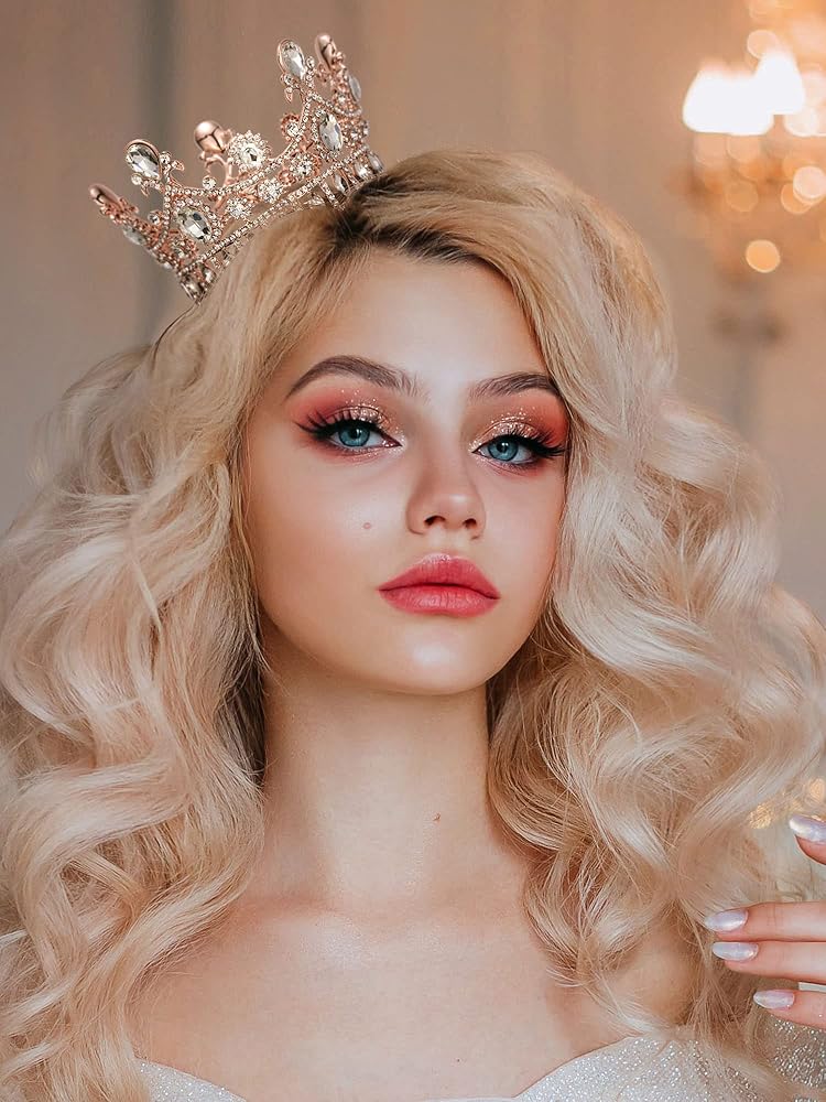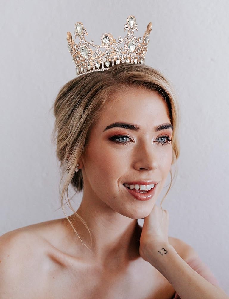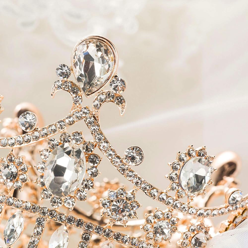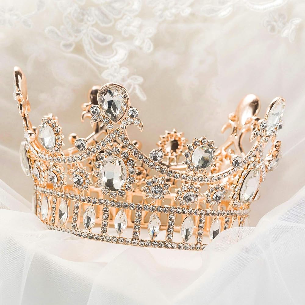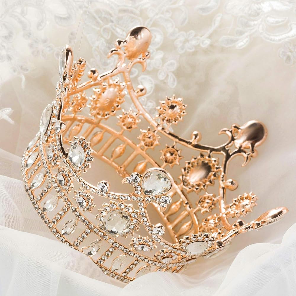 ♕ تصميم التاج الكامل يتطابق مع المعدن المطلي بالذهب الوردي والذي يتوزع سطحه على عدد لا يحصى من الكريستالات المصنوعة يدويًا مما يبرز أفضل ما في تاج الملكة الباروكي هذا.