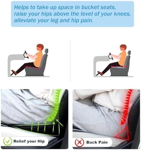 IMPROVED VISIBILITY & PAIN RELIEF: This seat cushion for car seat driver not only raises your position for improved sight and safer driving, but it also provides spinal protection and pain relief. By reducing pressure on the coccyx and sacrum, it helps alleviate lower back pain and sciatica, promoting a more comfortable and pain-free driving experience