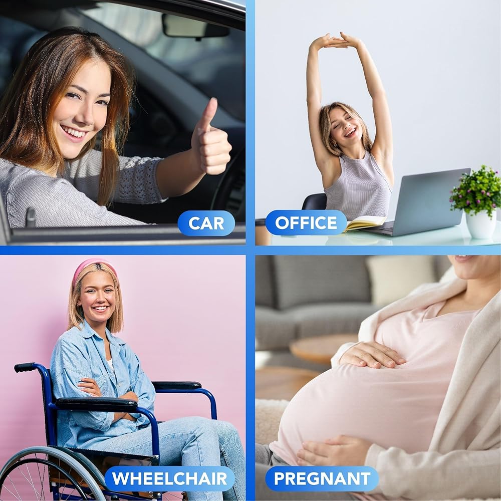 POSTURE CORRECTION & STRESS RELIEF: This car seat cushions for driving also serves as a lumbar support. Its ergonomic design improves posture and relieves pressure, making it ideal for work or driving. This car seat pillow is aimed at reducing back pain and maintaining the spine's natural curve