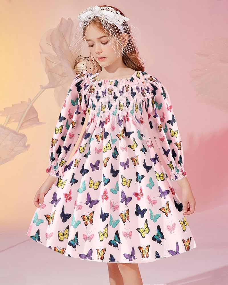 مميزات الفستان البناتي: طراز ريفي، أكمام طويلة واسعة، قبة مربعة، كشكش في الجزء العلوي من القائد، تصميم بكسرات في الجزء العلوي، طول التنورة عند الركبة. التنورة تتدفق ومناسبة للتدوير.