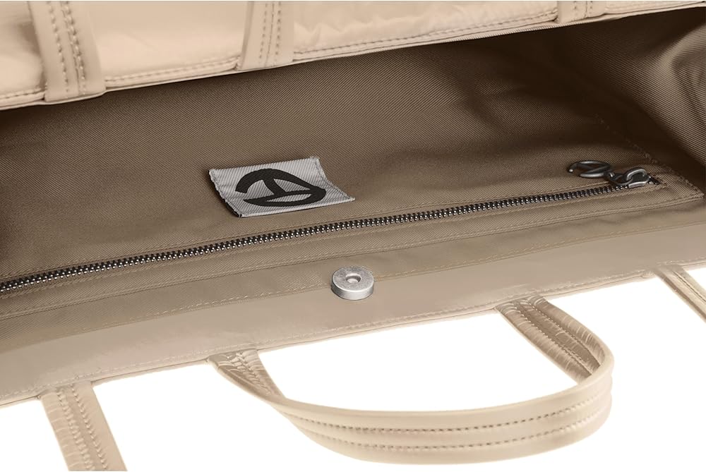 - تتميز بحزام مزدوج يمكن حمله باليد، أو على الكتف أو على شكل متقاطع، مع إغلاق مغناطيسي وجيب داخلي بسحاب.