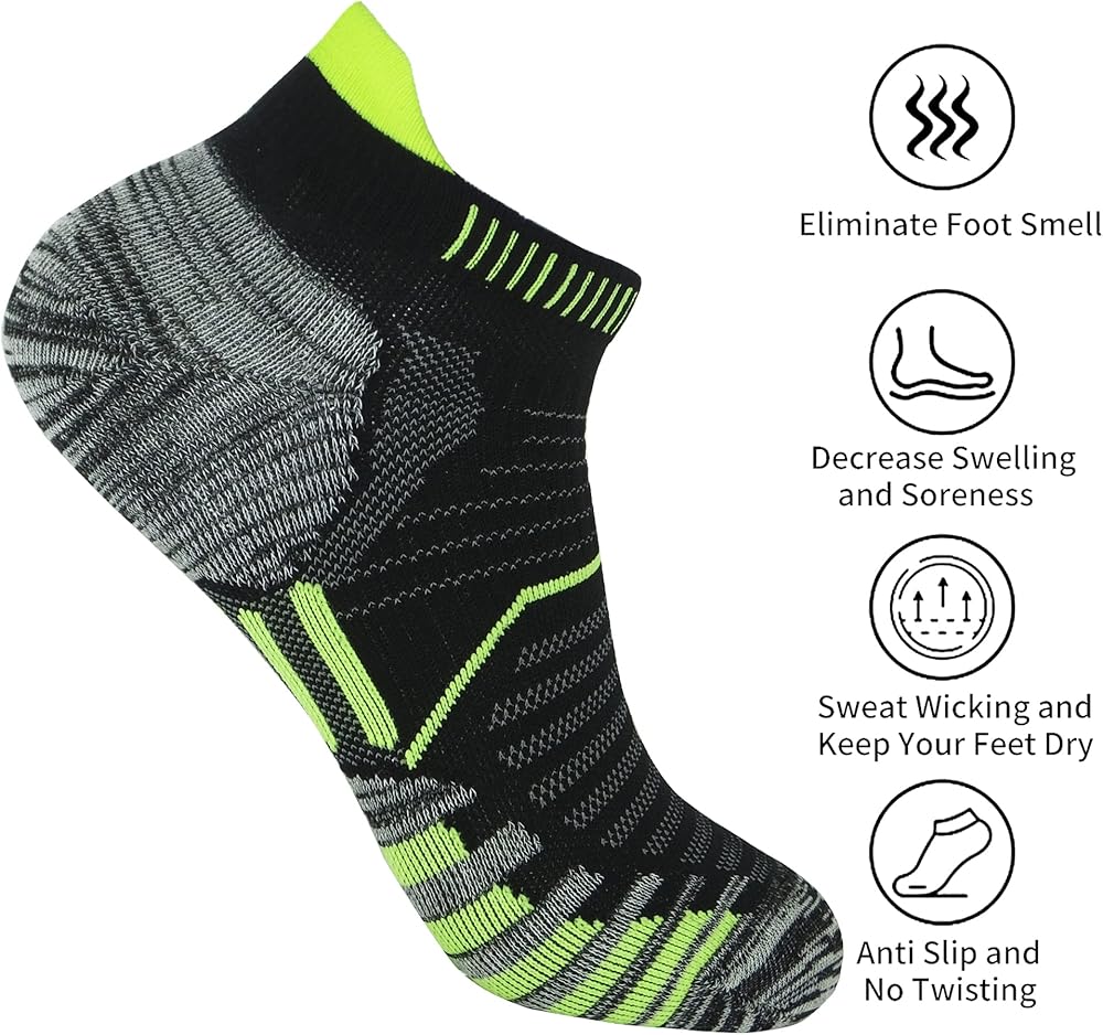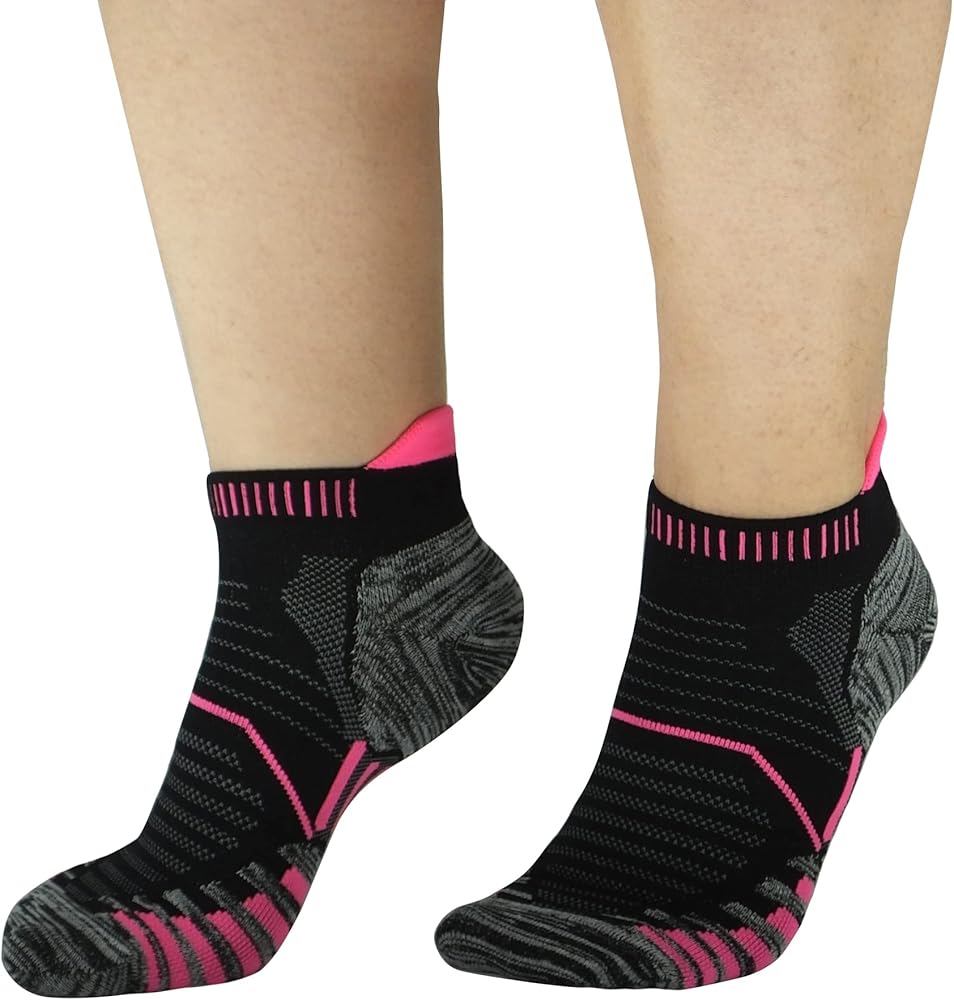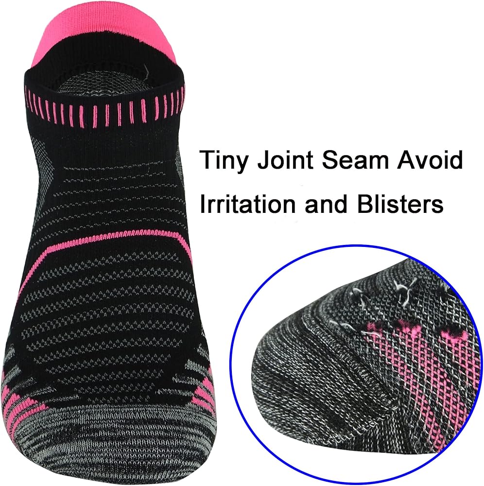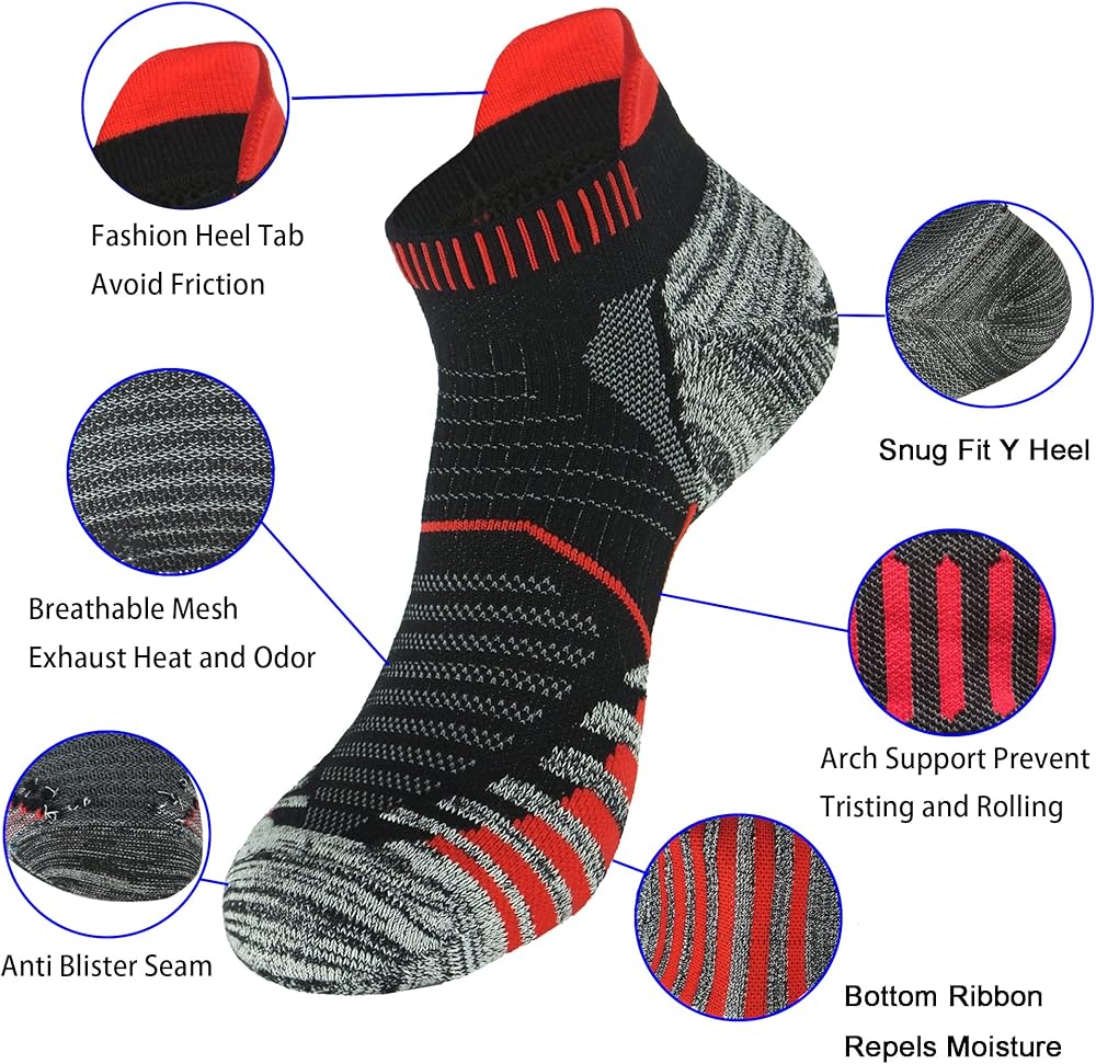 The athletic ankle socks provide 360 degree protection with the moderate compression(avoid twisting and sliding) and back heel tab(prevent you from friction with shoe's back-counter).