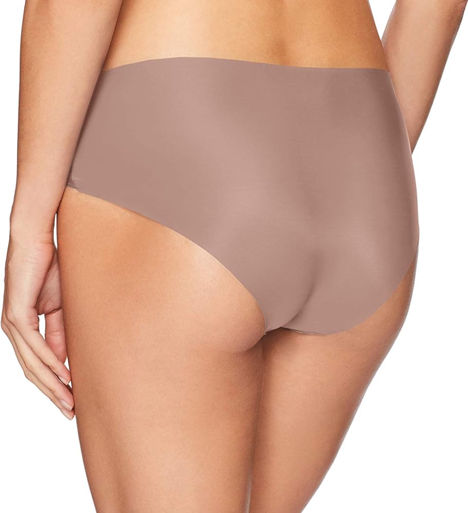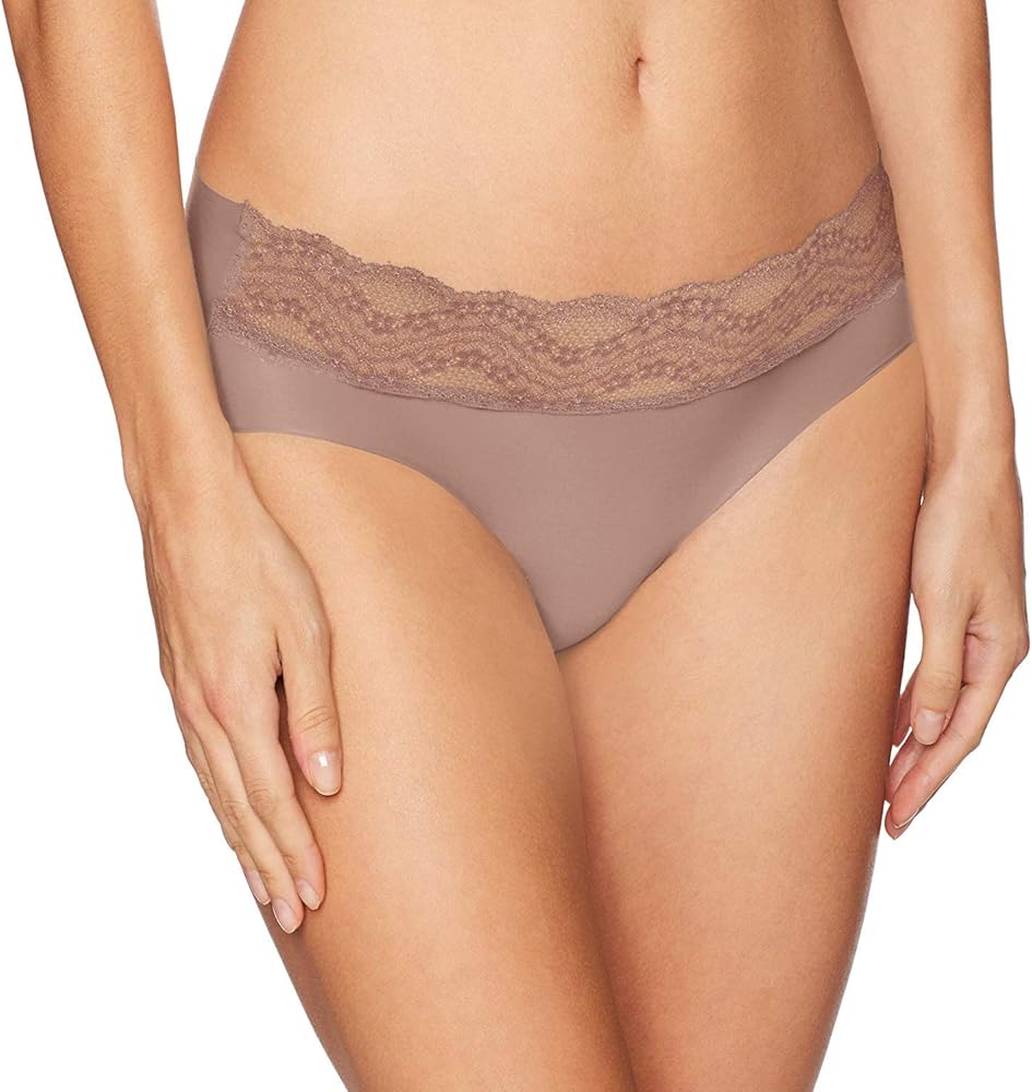 Hipster panty in lightweight clean cut fabric with lace detailing provides clean look under clothes
