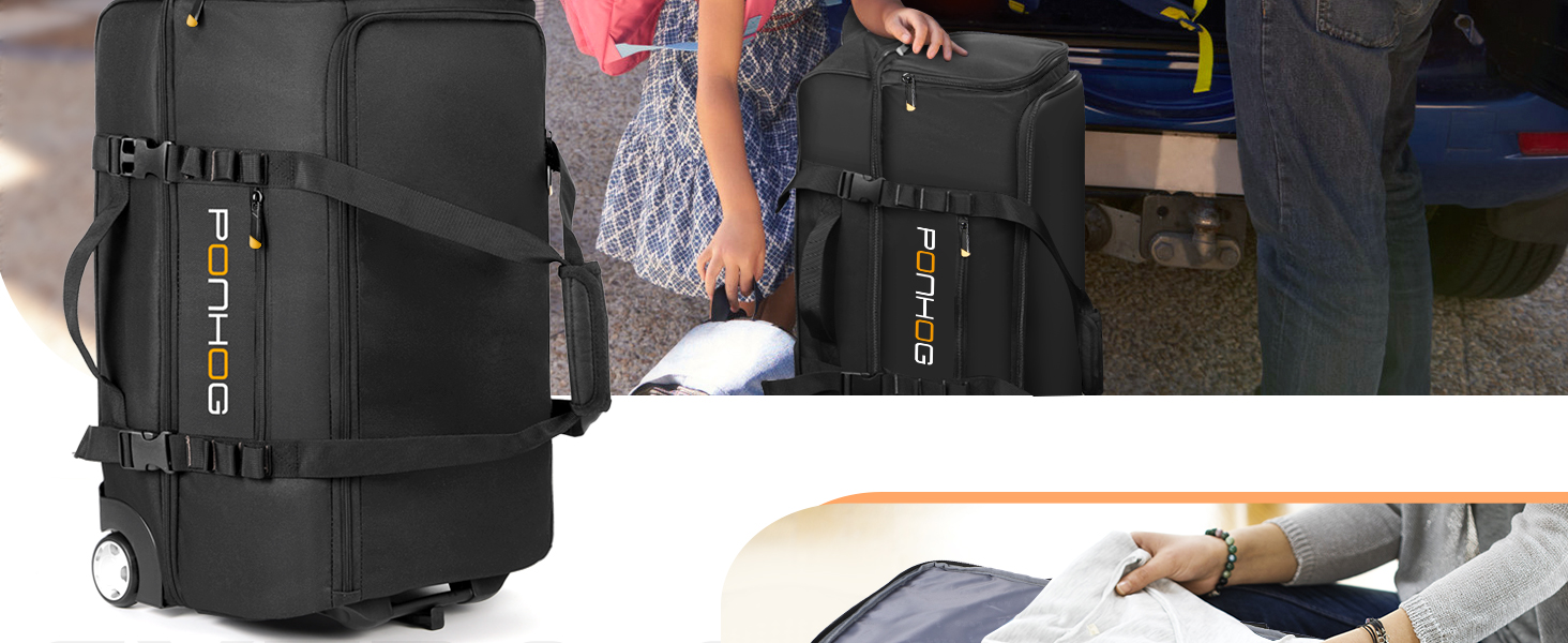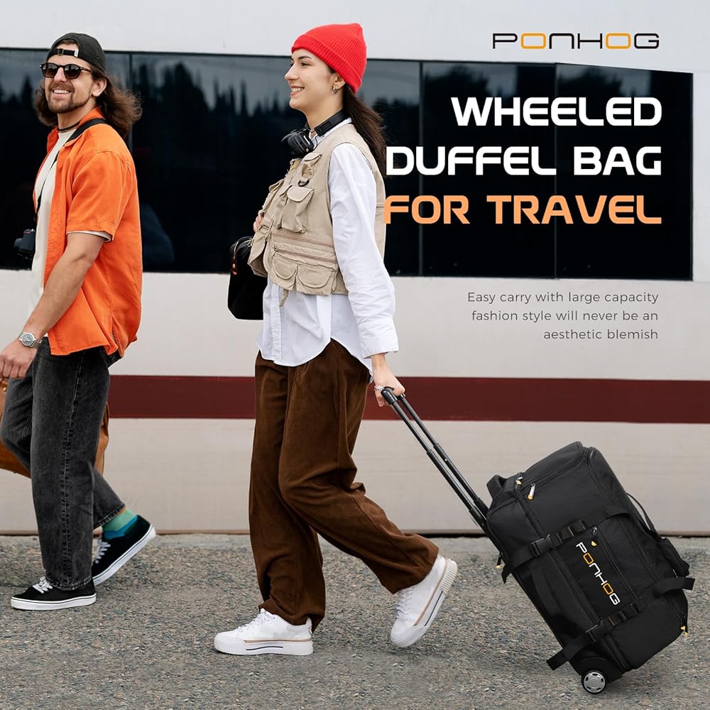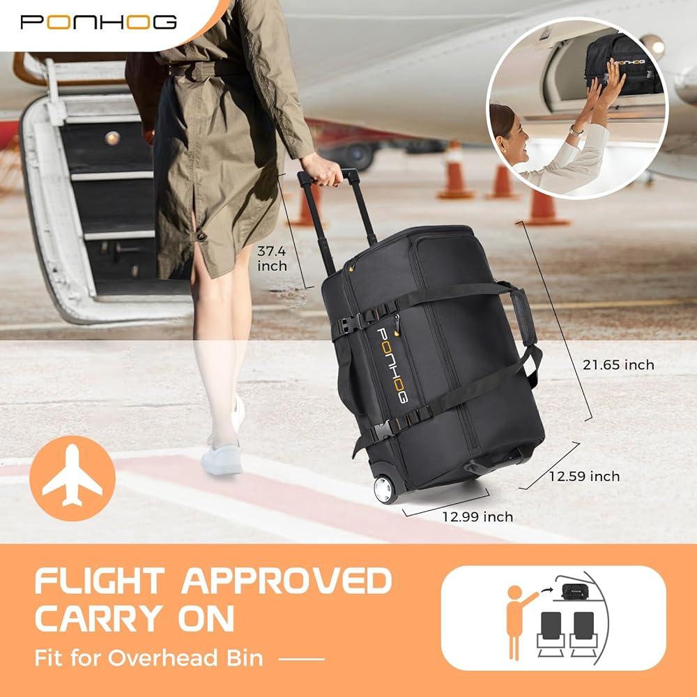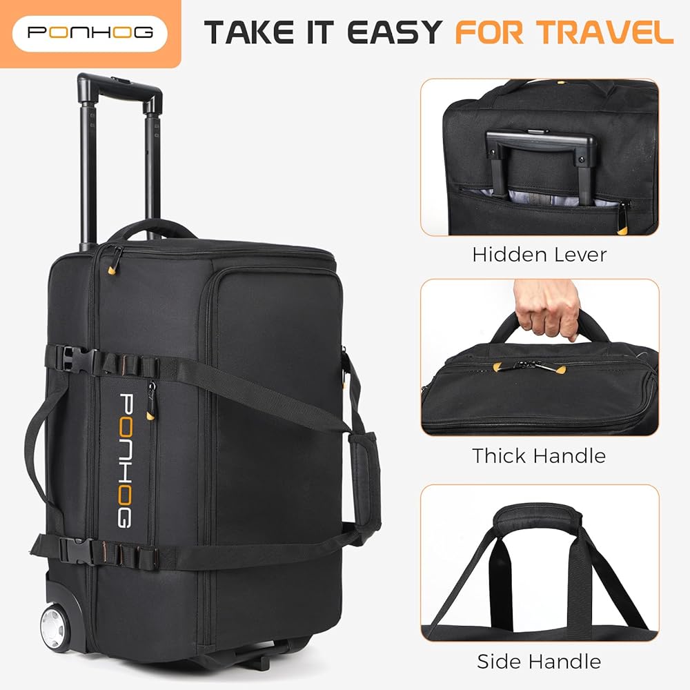 شريك السفر - حقيبة دفل بعجلات الحجم: 12.59*12.5*21.65 بوصة، سعة 60 لتر مثالية للرحلات الطويلة، والإجازات العائلية، والتخييم، وسفر الطلاب، ورحلة القيادة الذاتية وعطلة نهاية الأسبوع