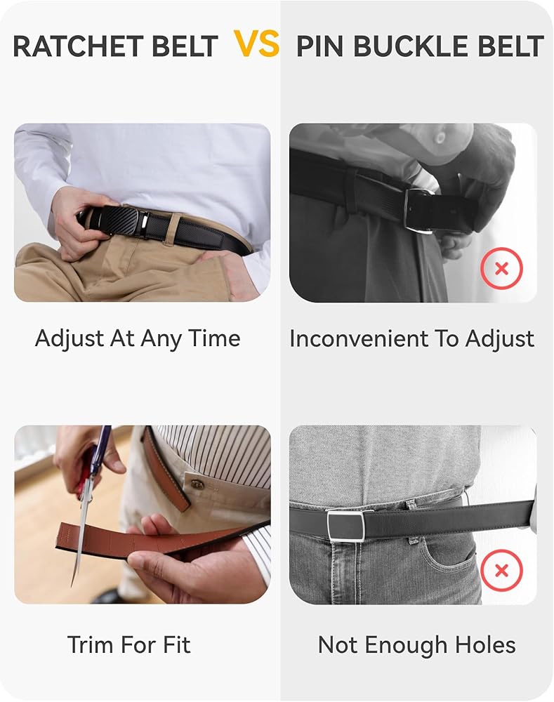 أحزمة CHAOREN السقاطة للرجال - حزام جلد رجالي 1 3/8 بوصة للفستان الكاجوال - حزام صغير قابل للتعديل يناسب كل مكان