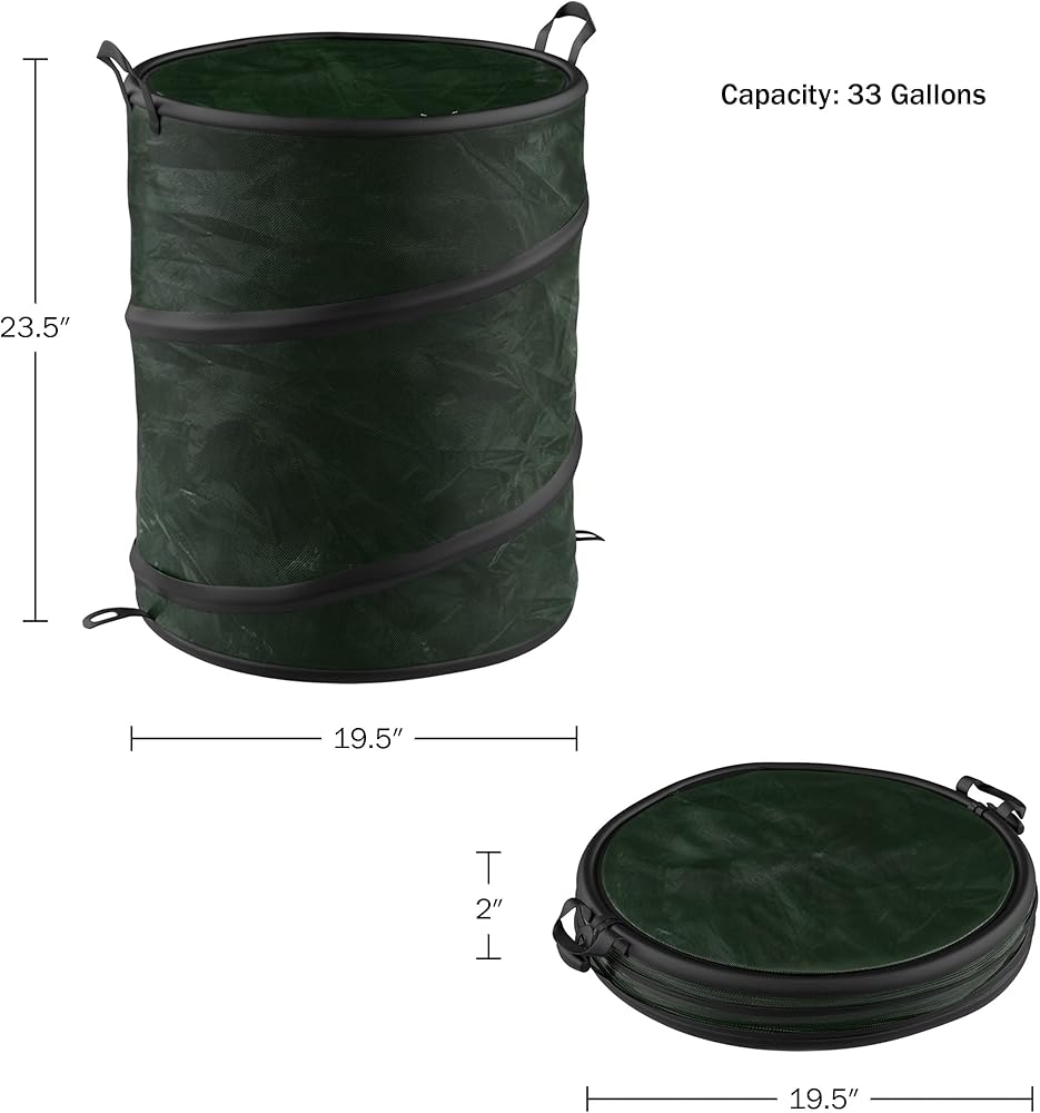 • SPACIOUS SIZE – Fill the collapsible bucket with up to 10-liters of ice or add water to use for anything from a camping dish washing station to a foot soak tub. The 33-gallon refuse container is perfect for tidying up after parties or at a campsite.