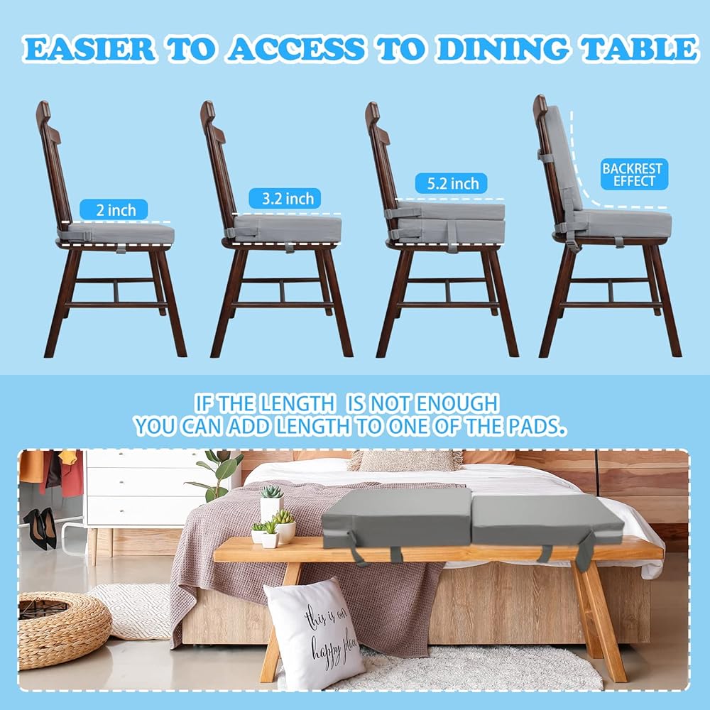 ❤【مقعد معزز من قطعتين لطاولة الطعام】باستثناء مقعد معزز بسمك 3.2 سم، أضفنا وسادة معززة أرفع قليلاً بسمك 5 سم. إذا لم تكن 3.2 بوصة كافية للأطفال، فحاول الحصول على 5.2 بوصة من الارتفاع عن طريق تركيب الوسادتين. وقمنا بتعديل حجم المقعد الداعم للطاولة: من أجل استيعاب المزيد من كراسي الطعام ذات الحجم الأكبر، قمنا بزيادة الطول الأصلي من 12.6 بوصة إلى 14 بوصة