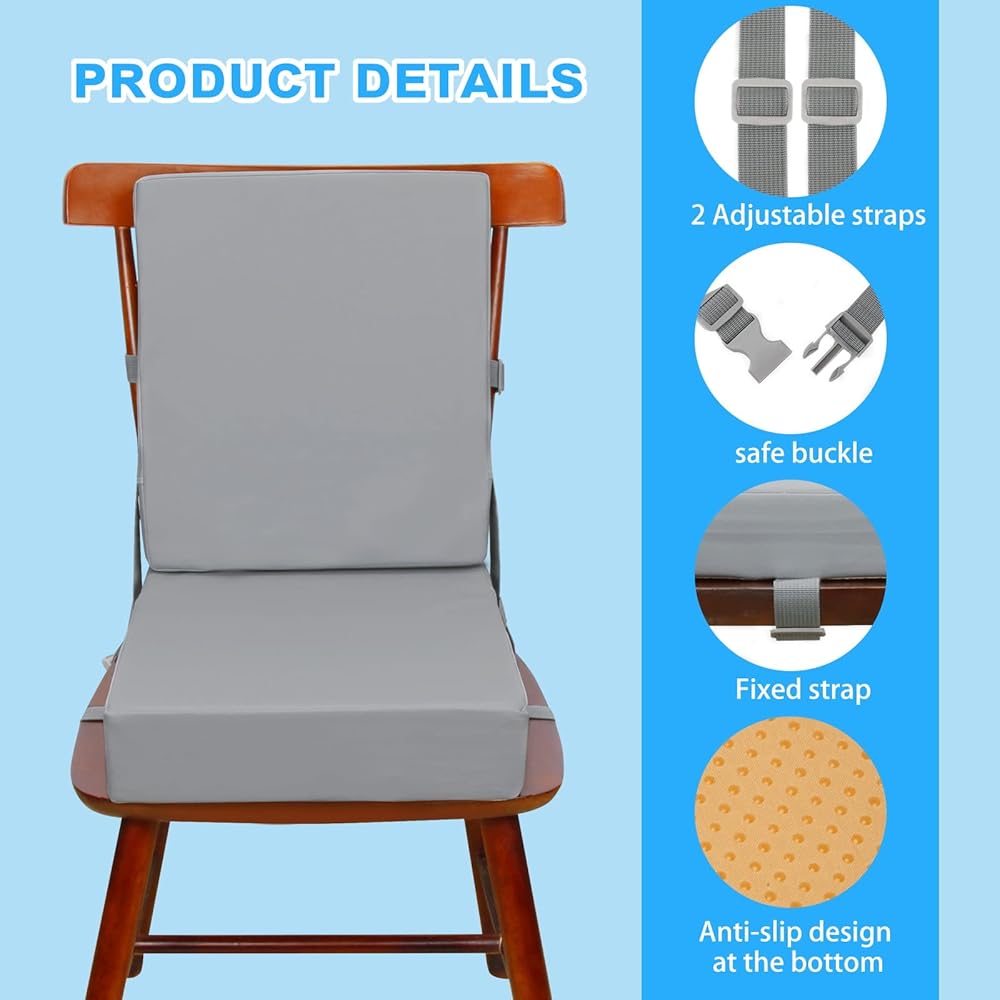 مقعد معزز لطاولة الطعام - وسادة كرسي معززة للأطفال الصغار مكونة من قطعتين مع ارتفاعات مختلفة لتناول الطعام، مقعد معزز مقاوم للماء وسهل التنظيف من البولي يوريثان مع قاعدة غير قابلة للانزلاق وأحزمة أمان قابلة للتعديل (رمادي PU)
