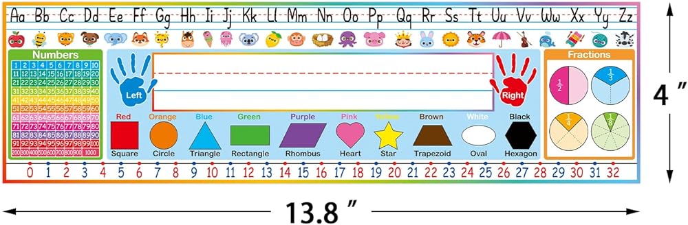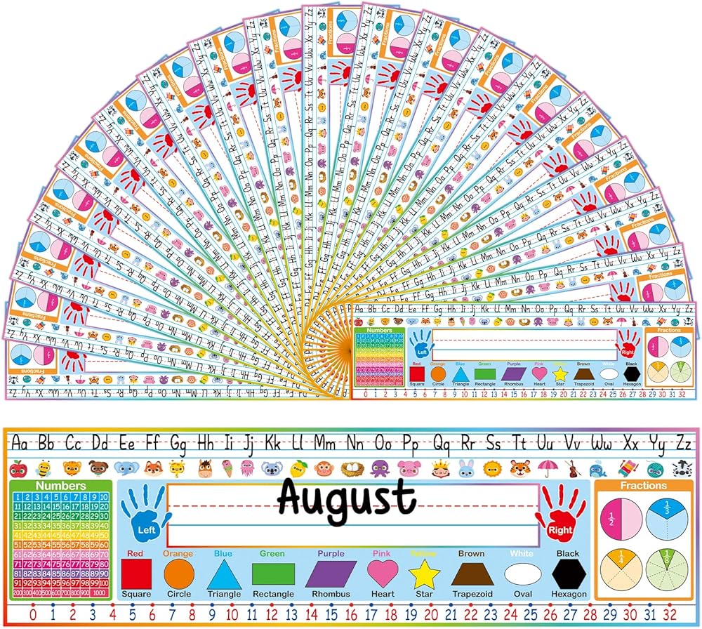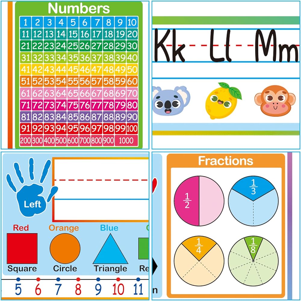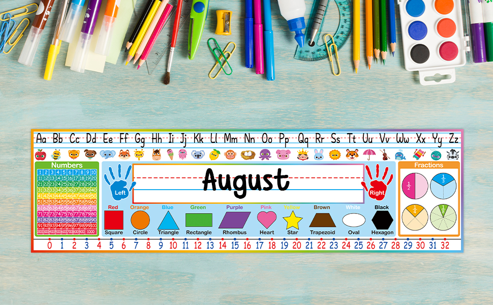 - تصميم مفيد - الكثير من الموارد للطلاب على مكاتبهم عندما يحتاجون مثل الحروف الأبجدية وخط الأرقام ومخطط الـ 100 والألوان والأشكال والكسور.
