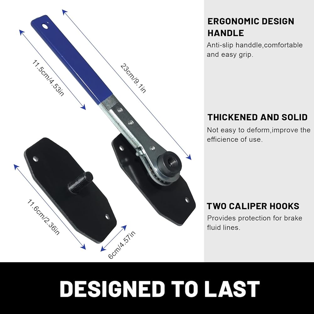 Easy to install, easy to remove, can compress your brake pistons effortlessly in seconds.