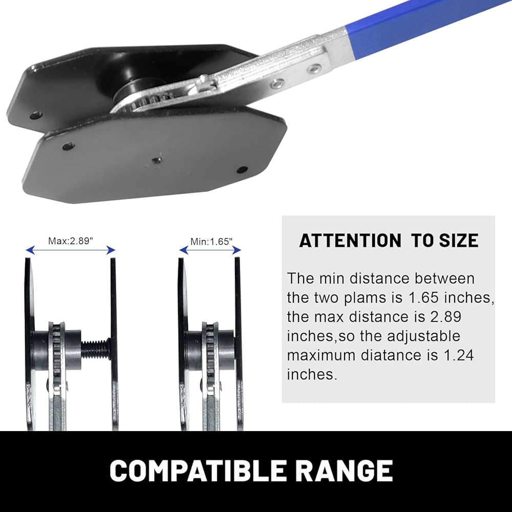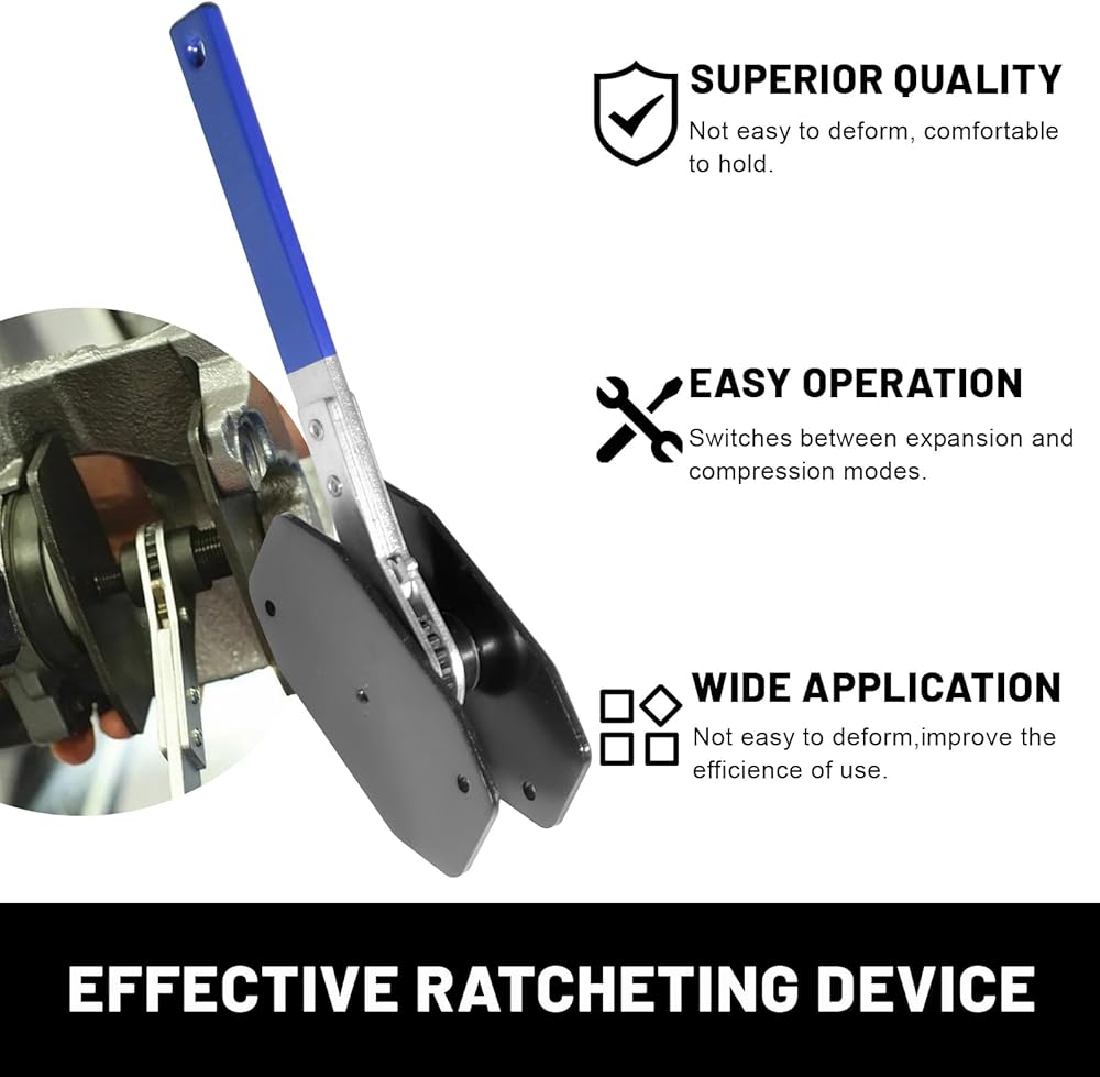 Universal brake caliper press tool constructed from high quality carbon steel and heat treated for strength and durability, not easy to bent. Rivet-reinforced non-slip handle, safer, comfortable and effectively extended service life.