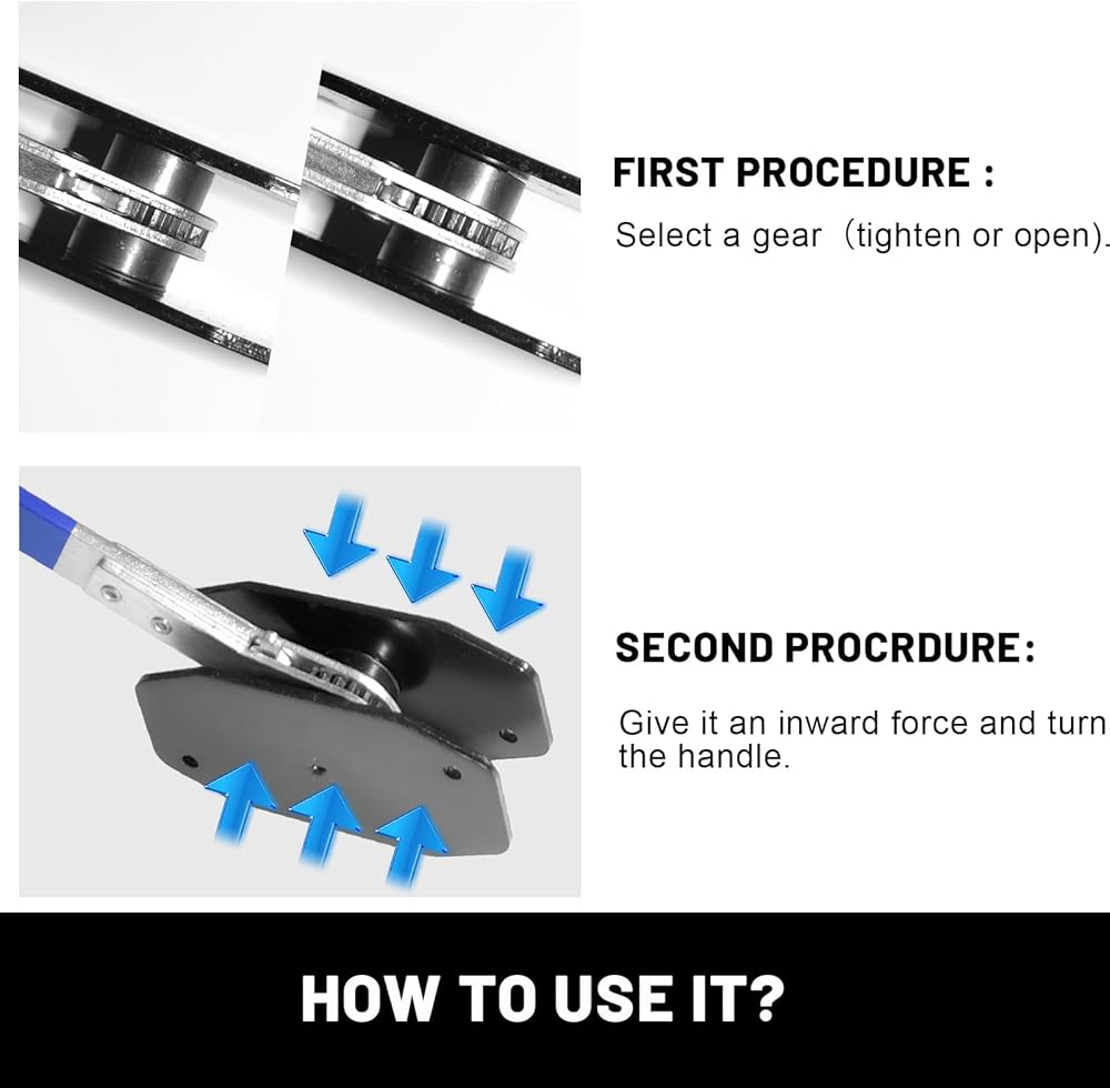 You can adjust the distance between the two steel plates by swinging the handle, and the positive and negative regulation is realized by flipping the reversing switch in the ratchet. Pinch the center of the ratcheting mechanism until it gets enough pressure, then it will work great with just a couple swings of the ratcheting arm. i.e. you have to have some tension on the bolt/nut to allow the ratchet to activate. More labor-saving operation than c-clamp.