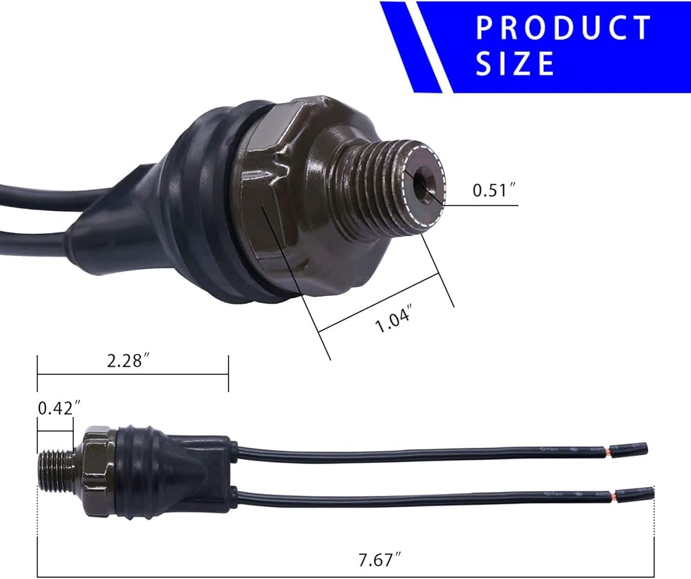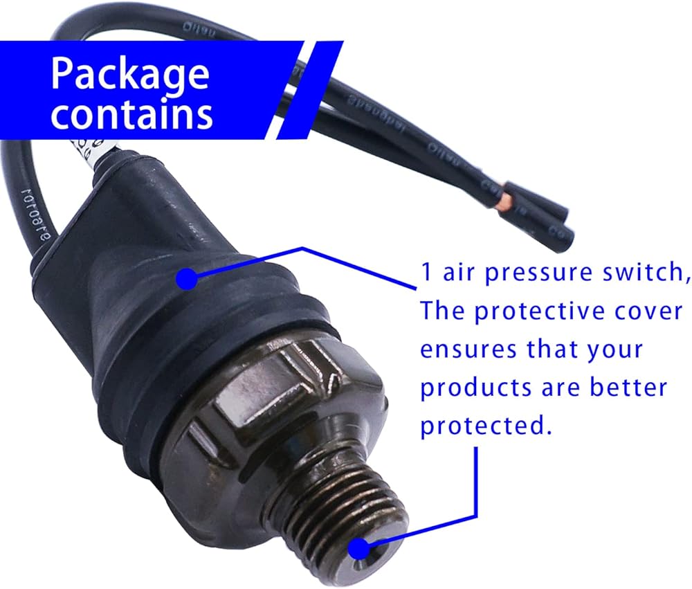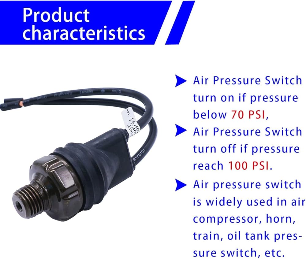 - خصائص المنتج: يتم تشغيل مفتاح ضغط الهواء إذا كان الضغط أقل من 70 رطل لكل بوصة مربعة، ويتم إيقاف التشغيل ليصل إلى 100 رطل لكل بوصة مربعة.