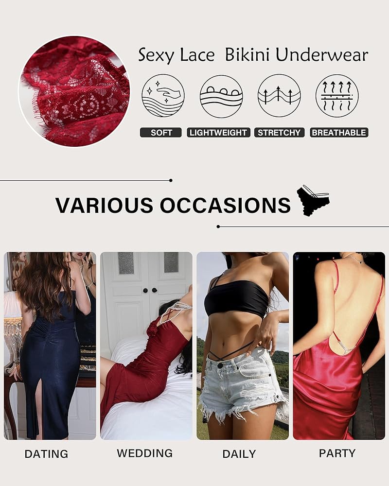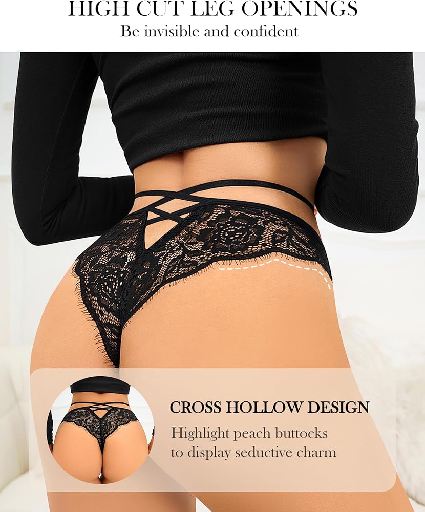 ملابس داخلية بيكيني مثيرة من الدانتيل - فتحات ساق عالية القطع وقص بيكيني مموج جديد يطيل الساقين بصريًا، ويظهر بجرأة الوركين الجميلين والمنحنيات الساحرة الأنيقة. تصميم مجوف على شكل حرف V يزين الأرداف الخوخية بجمال التنفس.