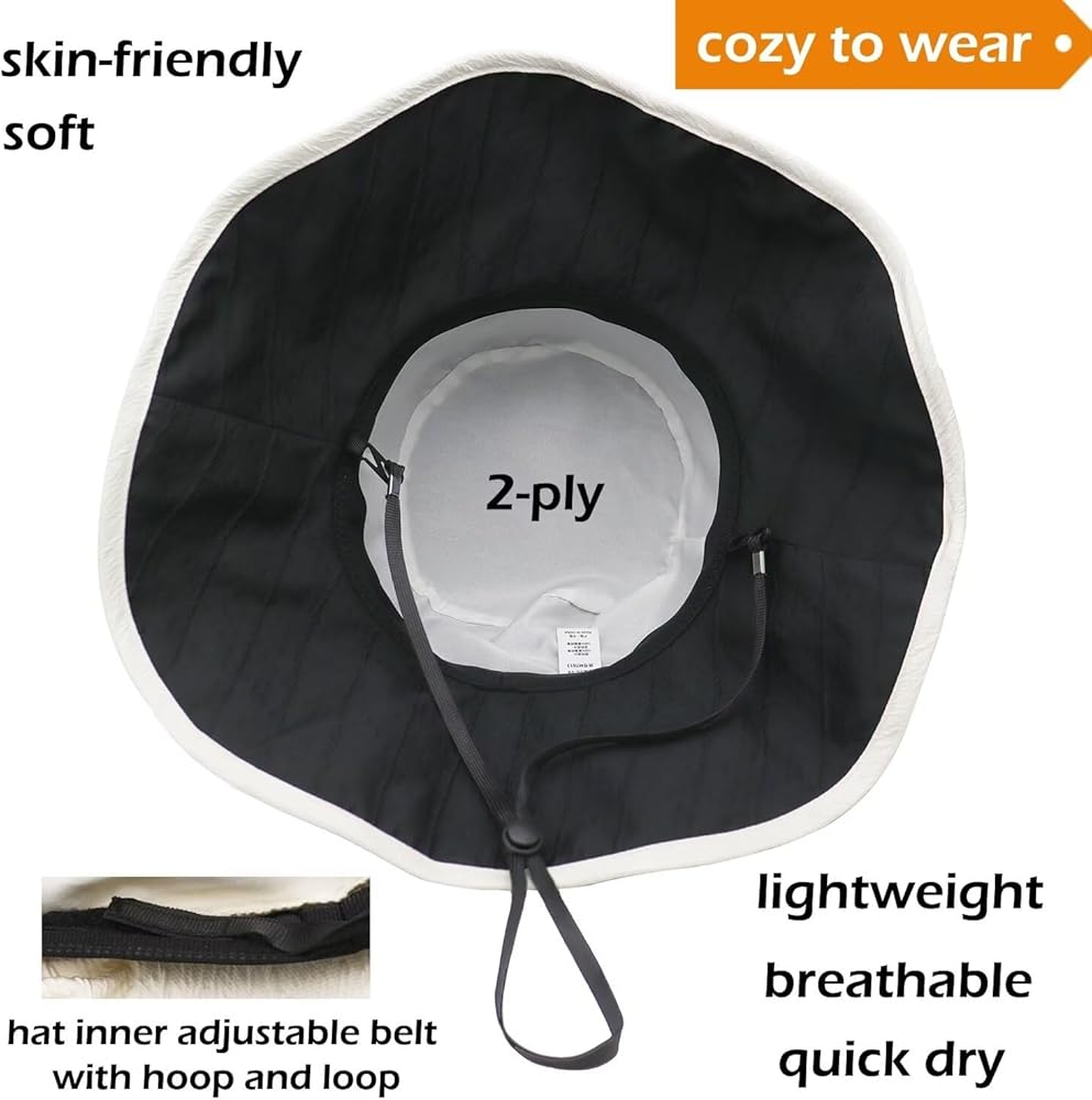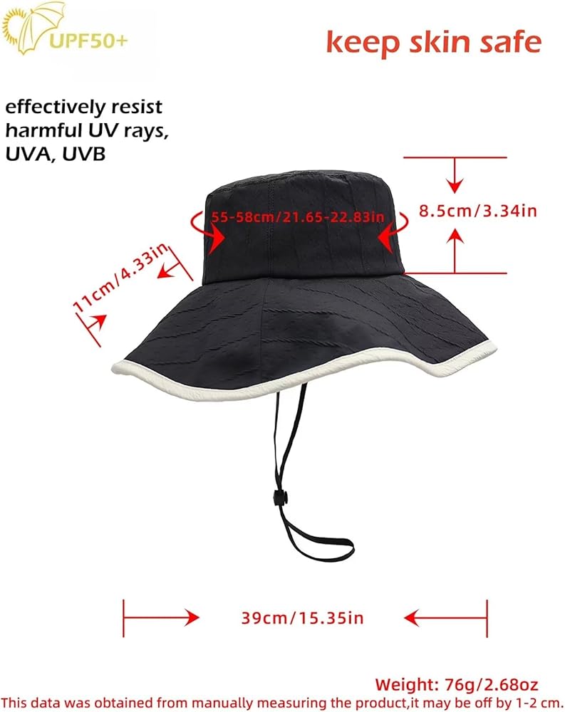 الحماية من الشمس: قبعة دلو ذات حافة عريضة 11 سم/4.33 بوصة، تقاوم بشكل فعال الأشعة فوق البنفسجية الضارة والأشعة فوق البنفسجية فئة A والأشعة فوق البنفسجية فئة B، وتمنع تسمير البشرة وحروق الشمس، UPF50+، حماية شاملة