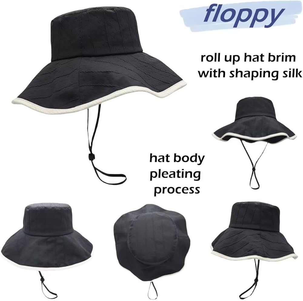 قبعة الشمس المرنة ذات الحافة العريضة من LLmoway للنساء في الصيف والسفر على الشاطئ بعامل حماية من الأشعة فوق البنفسجية 50+ قبعات دلو خفيفة الوزن قابلة للطي مع حزام قابل للفصل