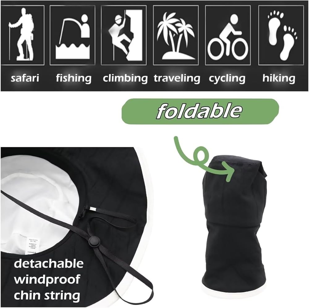 ميزات أخرى: سلسلة ذقن مقاومة للرياح قابلة للفصل، قبعة قابلة للطي، قابلة للتعبئة، سهلة الحمل، مناسبة لمعظم النساء أثناء السفر في الصيف في الهواء الطلق، والتخييم والمشي لمسافات طويلة، والسفاري، والبستنة، والجولف، وركوب القوارب، وصيد الأسماك، وركوب الدراجات، والمشي، إلخ. ملابس يومية غير رسمية وعصرية كل موسم