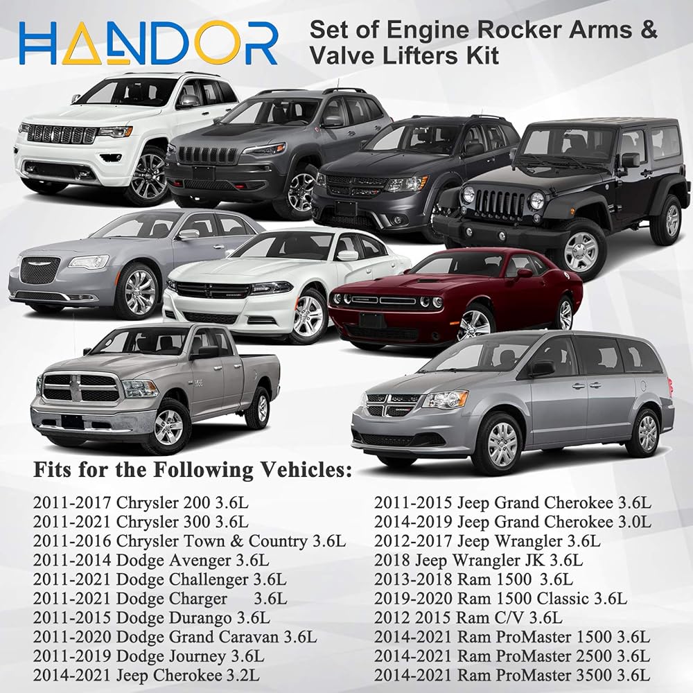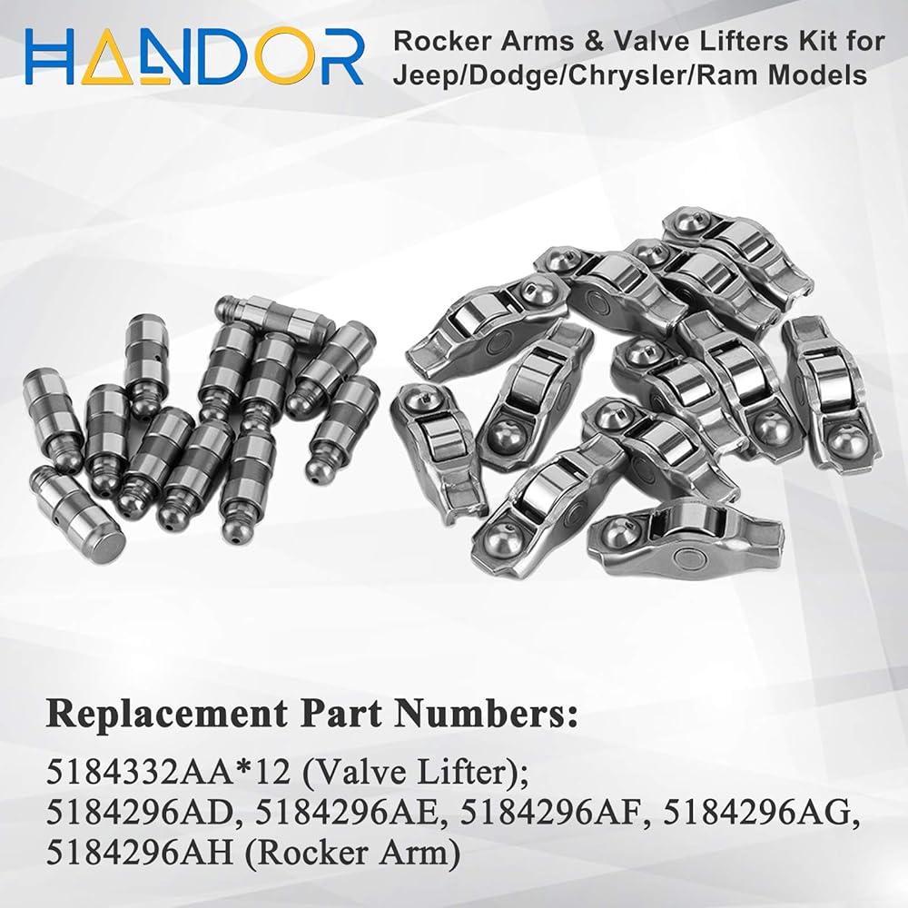 🚗 متوافق مع - 2018 Jee-p Wrangler JK 3.6L، 2013-2018 Ram 15003.6L، 2019-2020 Ram 1500 Classic 3.6L، 2012 2015 Ram C/V 3.6L، 2014-2021 Ram ProMaster 1500 3.6L، 201 4-2021 رام بروماستر 2500 3.6L, 2014-2021 رام بروماستر 3500 3.6L. أرقام الأجزاء المرجعية/الاستبدالية لـ: 5184332AA (رافع الصمام)؛ 5184296AD، 5184296AE، 5184296AF، 5184296AG، 5184296AH (ذراع الروك). ملاحظات: تتضمن العبوة 12 قطعة من أذرع الروك و12 قطعة من رافعات الصمامات.