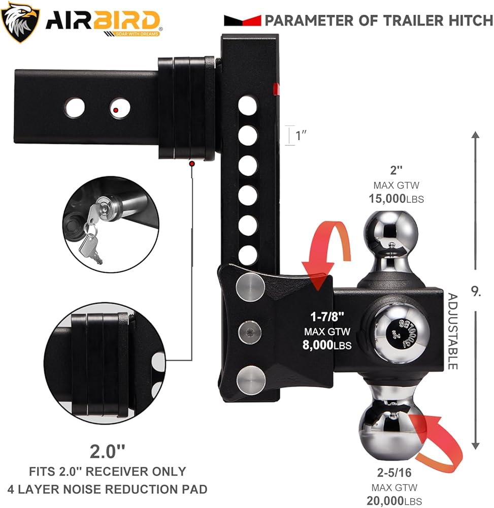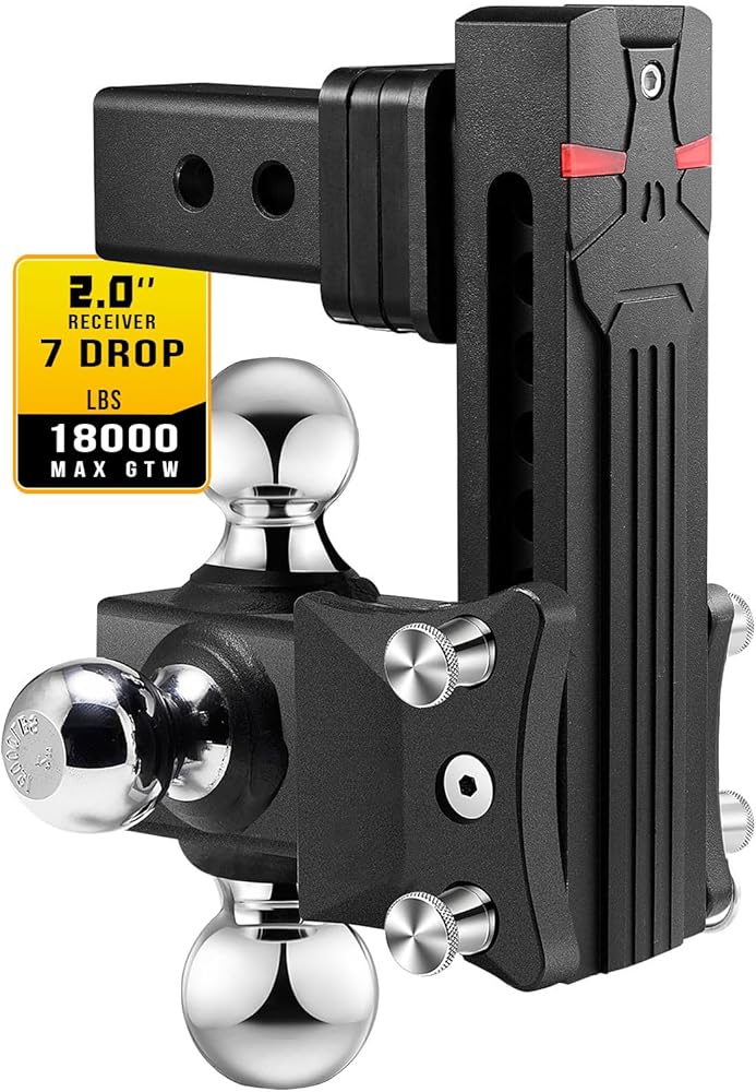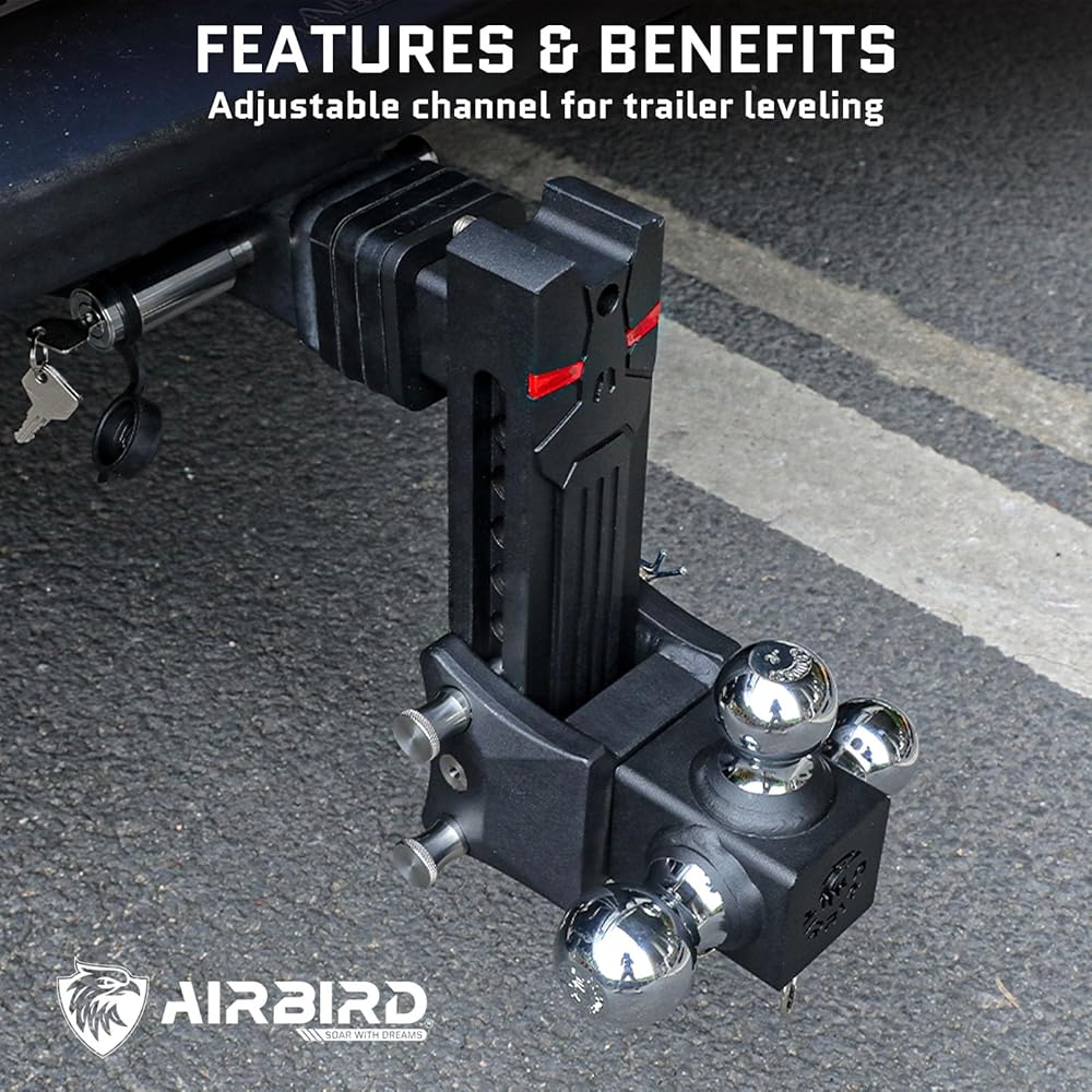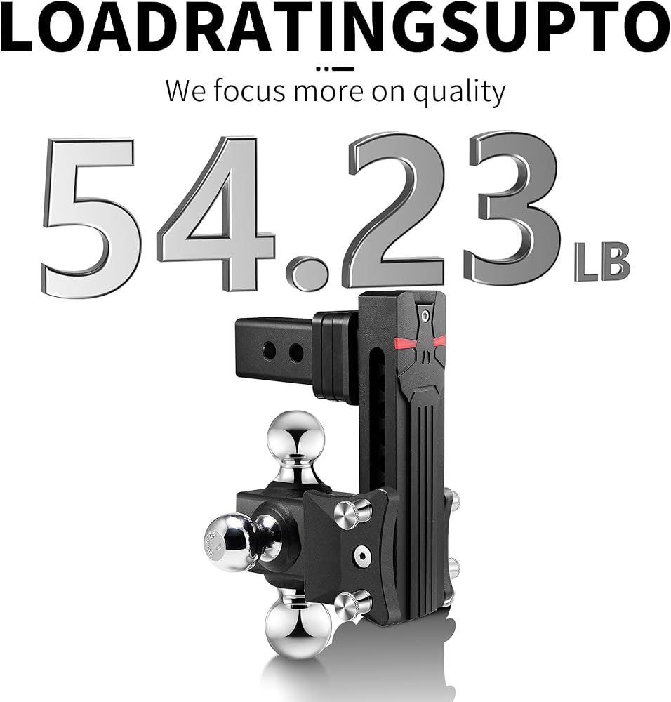 تحميل آمن بمستوى قابل للتعديل: يوفر جهاز وصلة المقطورة القابل للتعديل مستويات قابلة للتعديل من خلال اثنين من المسامير المقاومة للصدأ، مما يتيح 5 أوضاع مختلفة للسقوط من أجل محاذاة مثالية للمركبة والمقطورة. يتضمن قفلًا مضادًا للسرقة لتأمين المنتج إلى جهاز الاستقبال، ومنع السرقة والخسارة، عند عدم استخدام وصلة المقطورة. ما عليك سوى تدوير وصلة المقطورة أسفل السيارة وتشغيل تعديل السحب للخلف الحاصل على براءة اختراع من أجل السلامة!