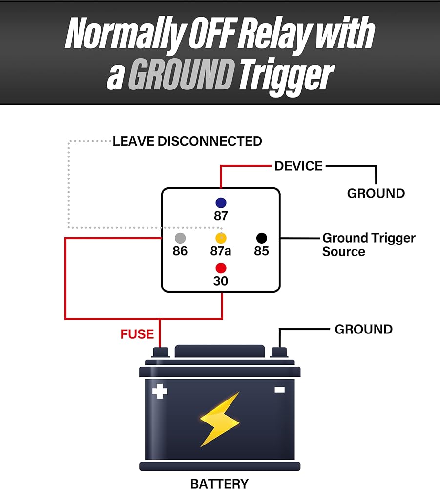 [SPDT Relay] It has normally open and normally closed terminals. When the relay is inactive, terminal 87A is energized, and when the relay is activated, the power is switched to terminal 87.