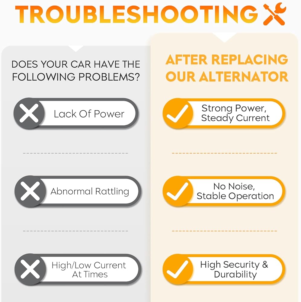 🚗 Premium Alternators: Alternators are tested by high thermal environment and high power demand to ensure product quality and durability.