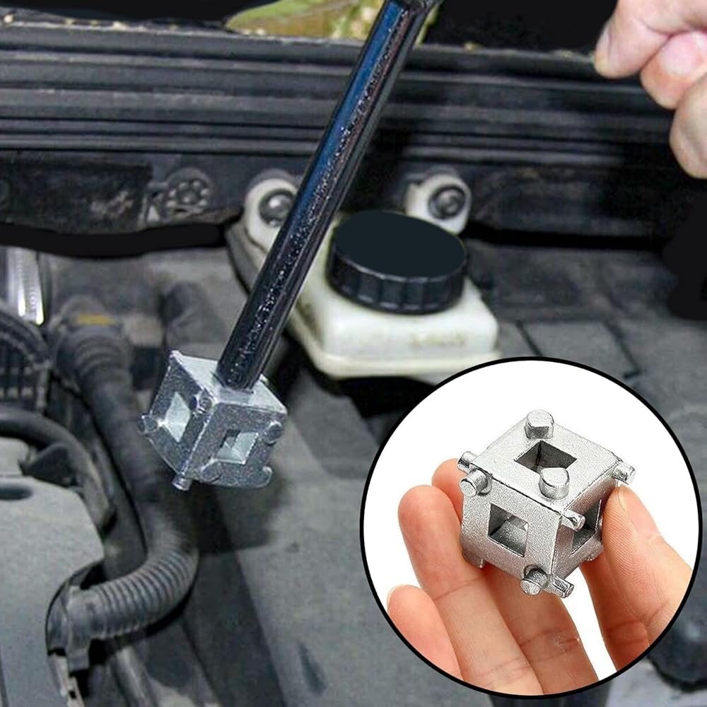 【WORKING PRINCIPLE】This tool rotates the piston back into the caliper when replacing brake pads for automotive rear disc brakes;it removes and installs the disc brake piston,aligns the piston groove with the back of the brake pad,and rotates the piston back into the caliper.