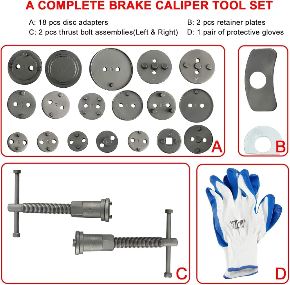 • تتضمن العبوة: 24 قطعة من فرجار الفرامل القرصية، قم بتدوير المكبس مرة أخرى إلى الفرجار لتركيب أحذية ووسادات الفرامل الجديدة، وزوج واحد من قفازات القبضة المغلفة بالمطاط مقاس 10، وقطعة واحدة من حقيبة التخزين شديدة التحمل.