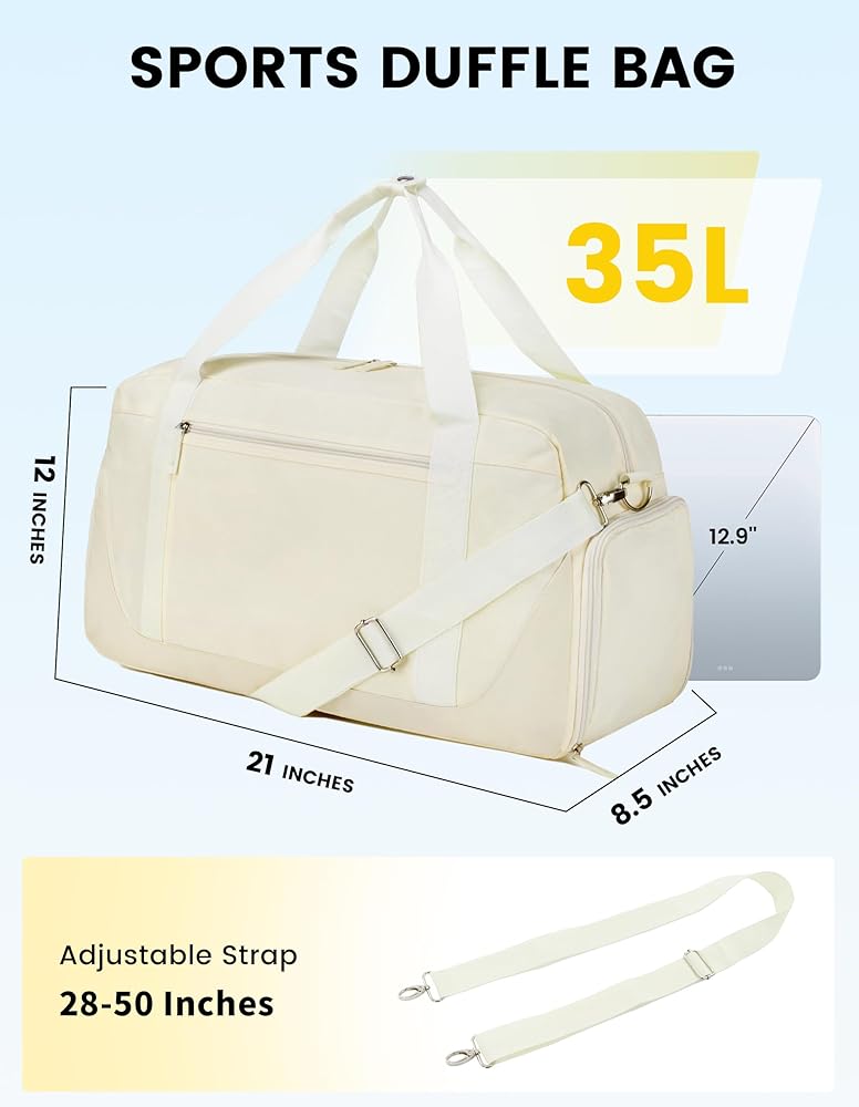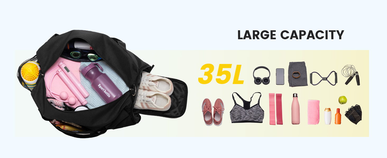حقيبة رياضية واسعة ومنظمة: مقاس 21 × 12 × 8.5 بوصة، وتبلغ سعة حقيبة الجيم هذه للنساء حوالي 35. حقيبة الحمل القماشية واسعة بما فيه الكفاية وتحتوي على 8 جيوب لتنظيم ملابسك أو مستلزماتك اليومية أو أدوات النظافة أو بعض العناصر الرياضية الصغيرة بشكل جيد. يلبي تمامًا احتياجاتك لممارسة الرياضة أو صالة الألعاب الرياضية أو رحلات نهاية الأسبوع