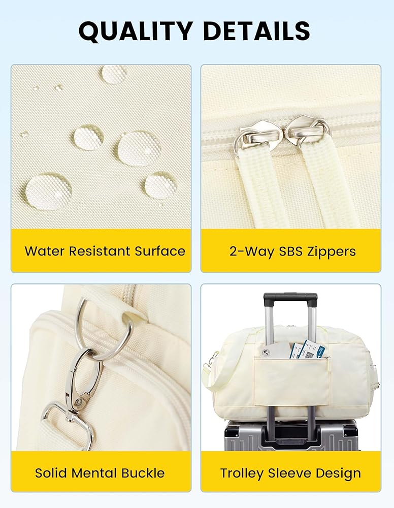حقيبة دفل عالية الجودة: حقيبة الدفل الصغيرة مصنوعة من بوليستر عالي الجودة مقاوم للماء 600D والذي يدوم لفترة طويلة ويمكنه حماية أغراضك من الماء المتناثر. الخطاف المعدني الصلب والخياطة المتقاطعة المعززة تجعل حقيبة الدفل للسفر أكثر قوة. حزام حقيبة الصالة الرياضية النسائية قابل للتعديل ليناسب احتياجاتك ويمكن أن تنزلق سحابات SBS القوية بسلاسة وسهولة