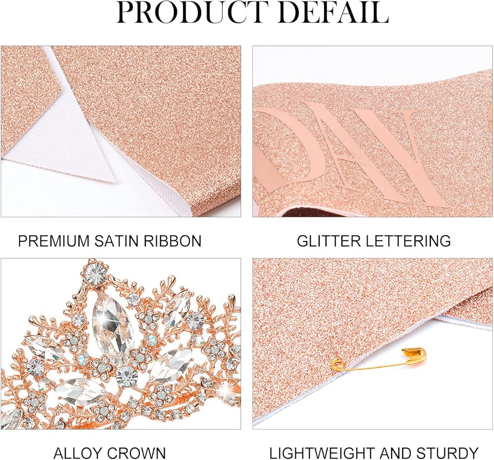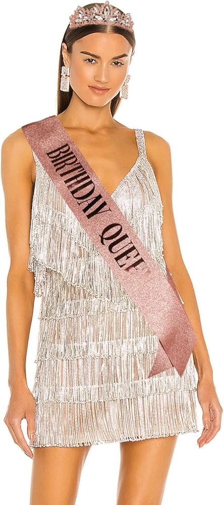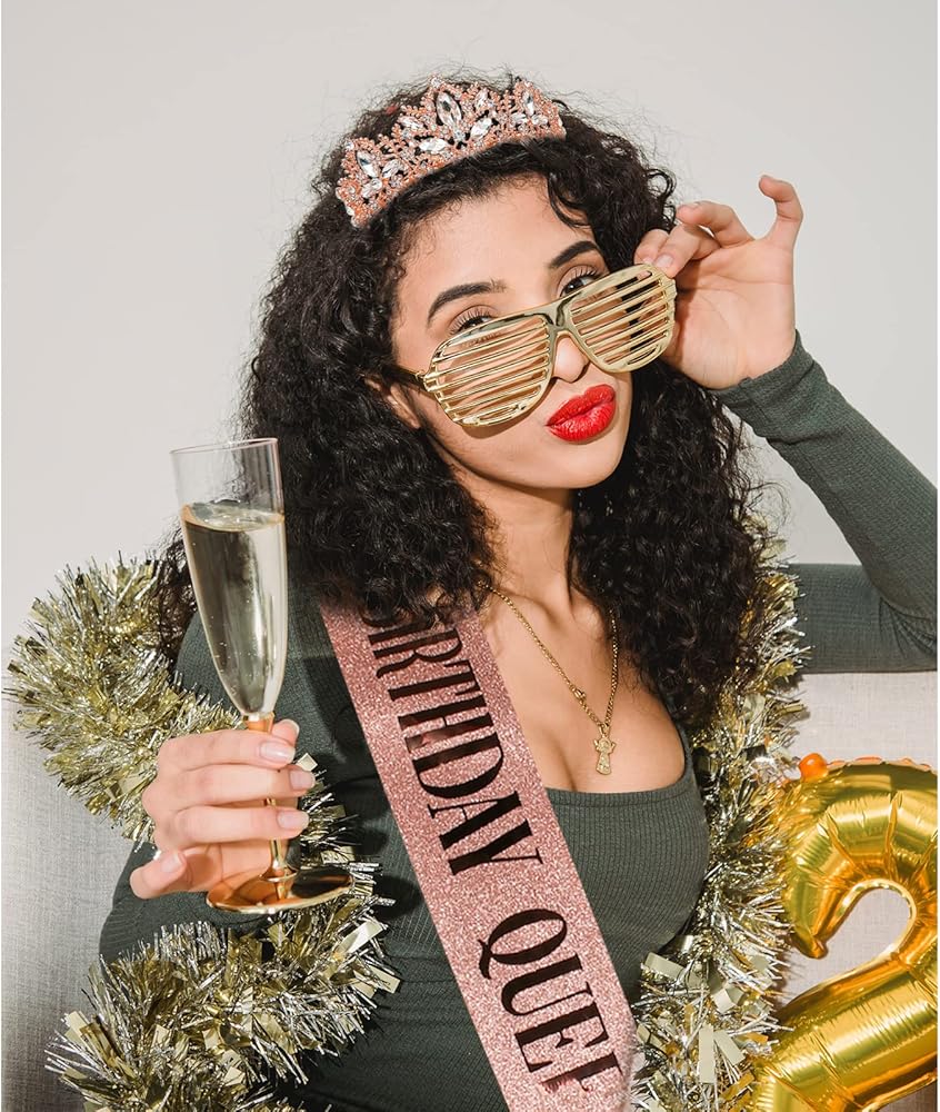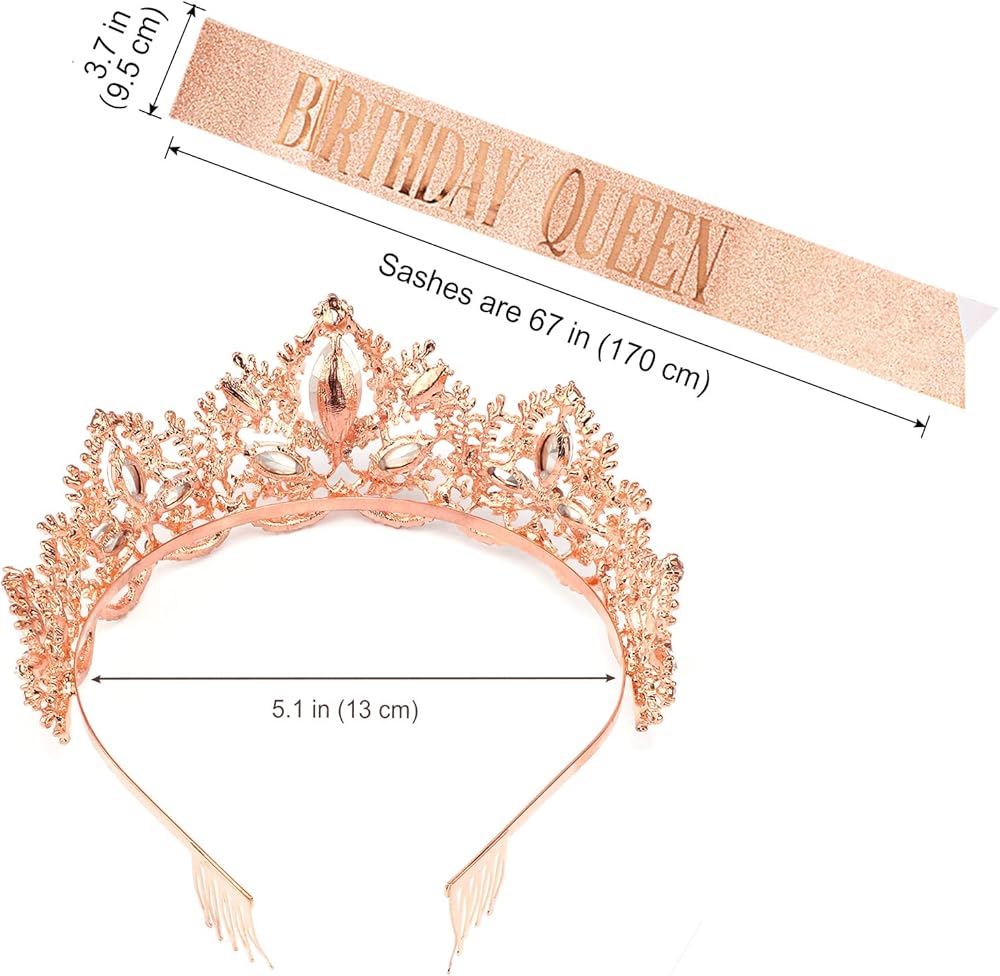 🎁 وشاح لامع + تاج كريستالي - وشاحنا مصنوع من أجمل المواد الذهبية اللامعة والرقائق المعدنية المضغوطة يدويًا مكتوب عليها "BIRTHDAY QUEEN" - يبلغ عرض كل وشاح 3.5 بوصة وطوله 33 بوصة. تاج عيد الميلاد مصنوع من حجر الراين والسبائك، لامع وجميل يجعلك أكثر سحرًا وجاذبية. يبلغ قطر كل تاج 4.92 بوصة (12.5 سم)، وارتفاعه 2 بوصة (6 سم).