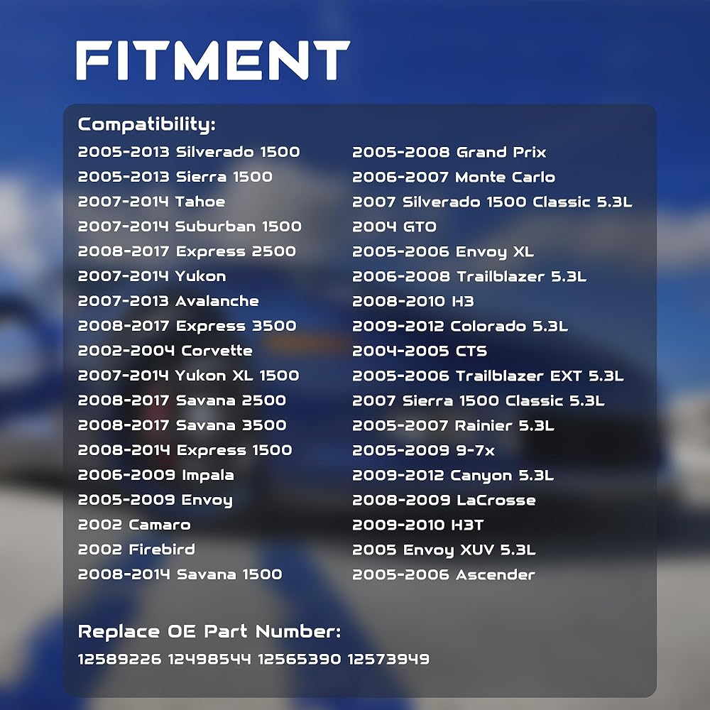 - Fitment: 2005-2013 Sierra 1500, 2007-2014 Tahoe, 2007-2014 Suburban 1500, 2008-2017 Express 2500, 2007-2014 Yukon, 2007-2013 Avalanche, 2008-2017 Express 3500, 2002-2004 Corvette