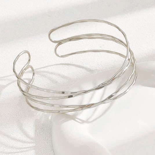 • Upper arm cuff: This simple and unique open cuff bracelet features a specially designed adjustable opening that allows you to adjust the size of the cuff bracelet to perfectly fit your arm.