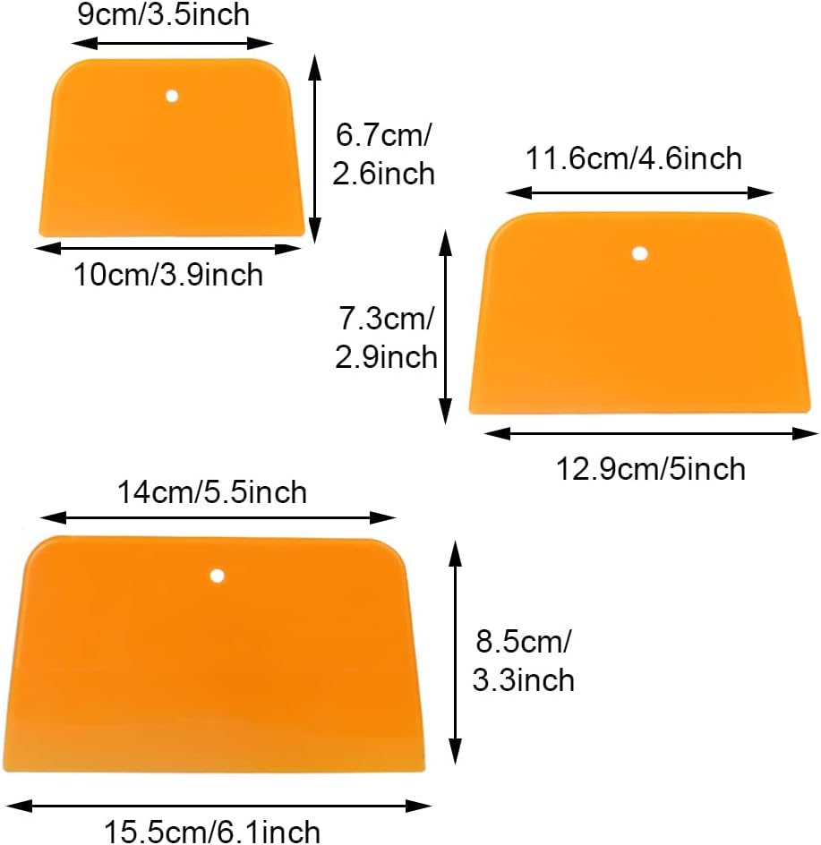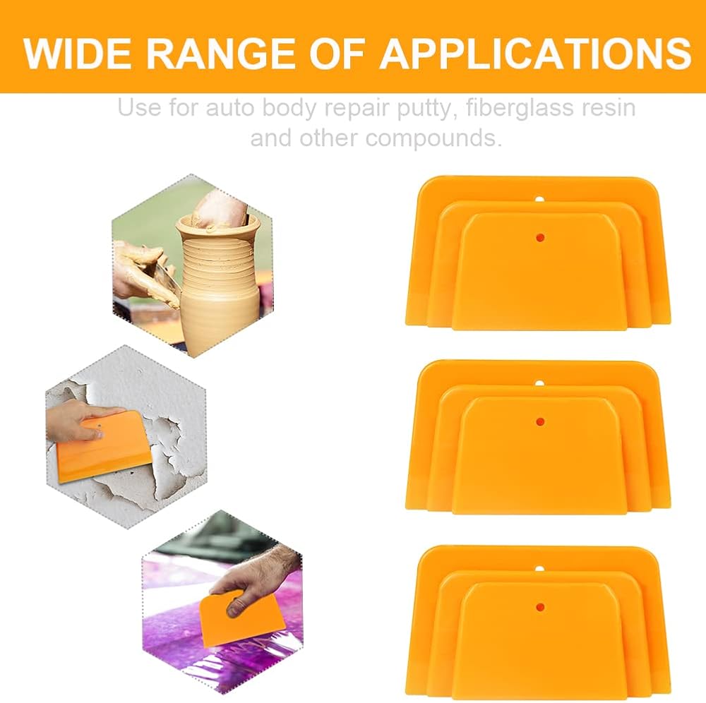 【Three sizes】The package includes three sizes, plastic flexible spreaders, which ensures that you'll always have the right size filler spreader to create your best work in auto body repair.Each wall scraper is lightweight and easy to clean for efficient re-use as a filler tool.