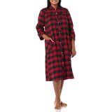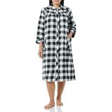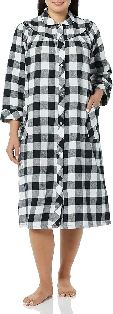 AmeriMark Women's Flannel Calf Length Snap Front Duster House Coat – Plush Bath Robe – Loose Plaid Bathrobe ¾ Sleeves