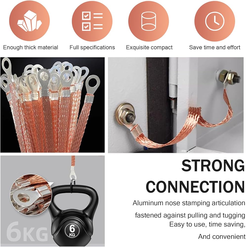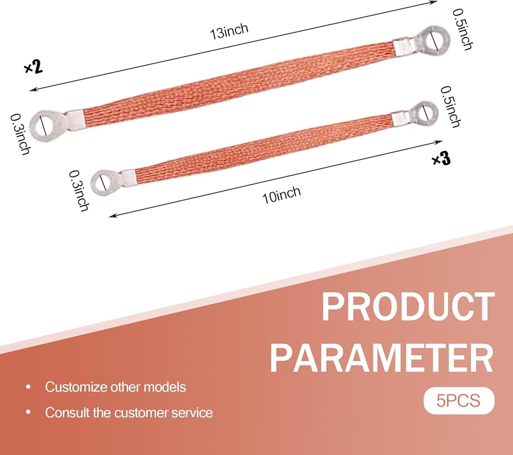 Packing List: You will receive three 9.84" automotive ground straps and two 12.99" ground straps. There are terminal blocks on both sides, the wiring is firm, the performance is strong, and it is not easy to fall off. It can be used for grounding of distribution boxes, cable bridges, leakage protection, and high-power appliances.