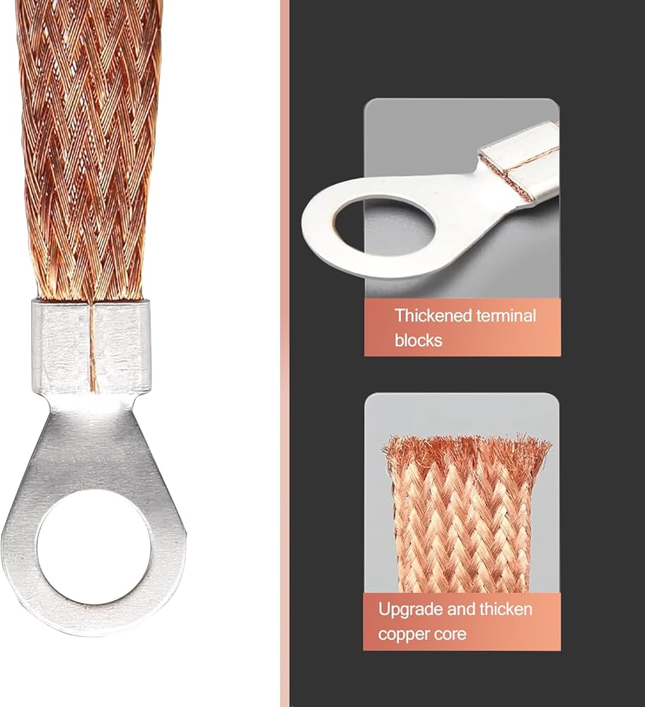 Excellent Conductive Performance: Copper is a good conductive material, and the copper braided grounding strap can provide good grounding performance to ensure that the system of various vehicle components works normally.