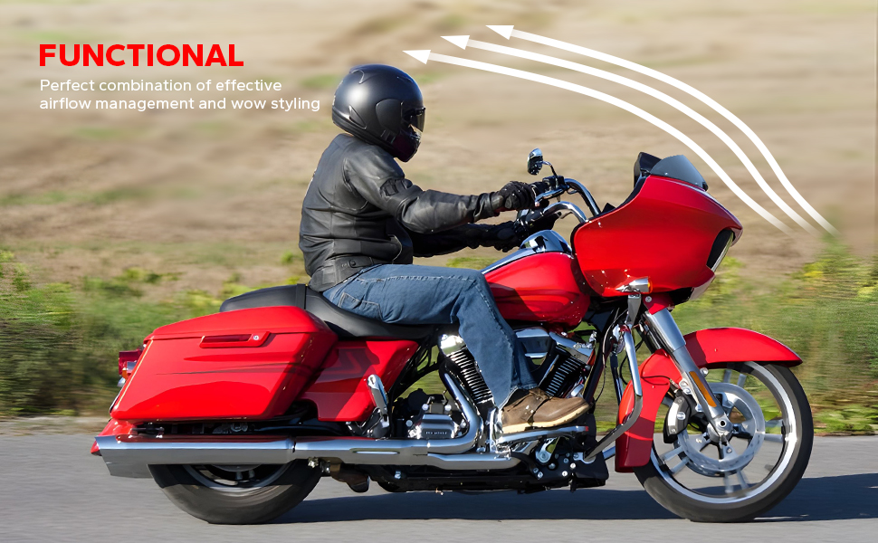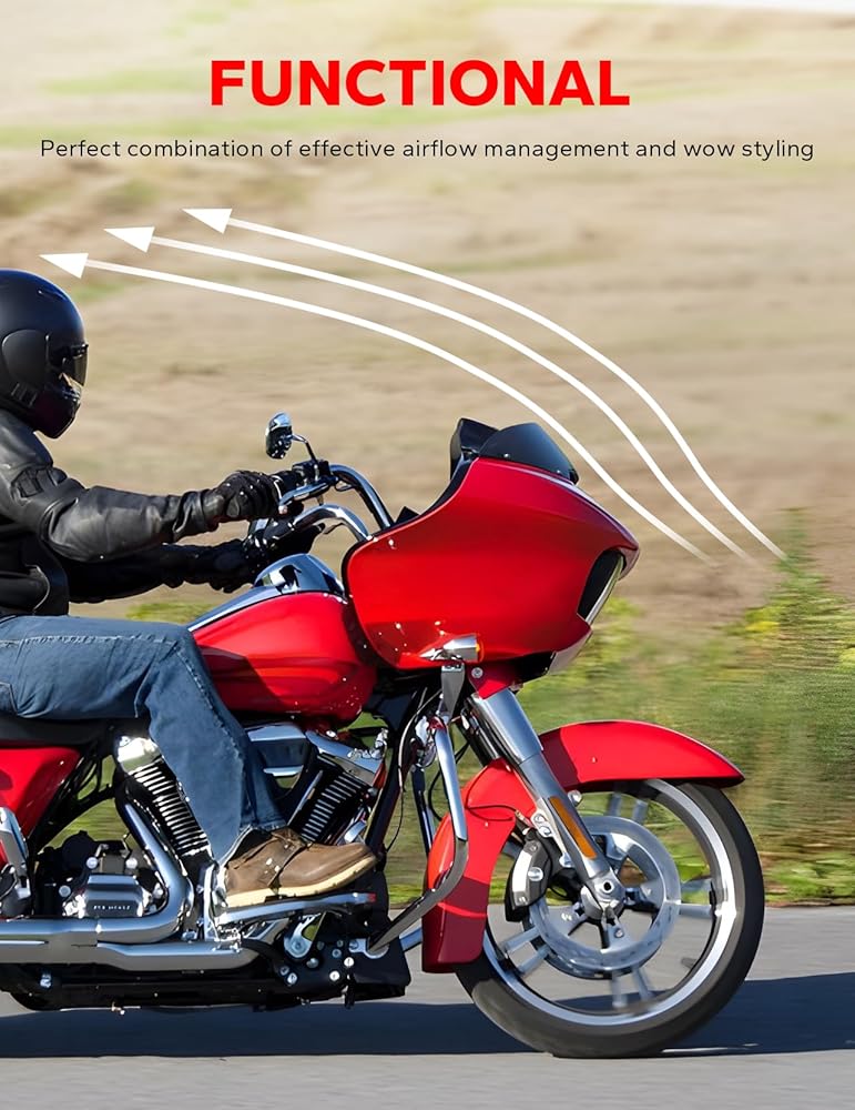 الإعداد: إنه فاصل الرياح للزجاج الأمامي للدراجات النارية لما بعد البيع مناسب لنماذج Harley Davidson Touring Road Glide 2015 2016 2017 2018 2019 2020 2021 2022 2023 2024